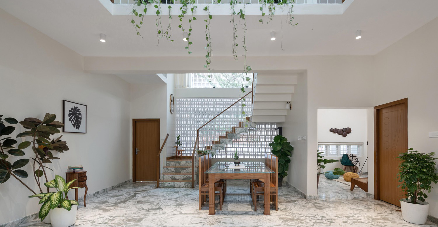 บ้านหลังนี้มีข้อจำกัดตรงมีที่ดินหน้าแคบ ทำให้การออกแบบโครงสร้างภายนอก รวมถึงพื้นที่ใช้สอยภายในค่อนข้างแตกต่างจากบ้านทั่วไป แต่ก็นับเป็นความท้าทายการทำงานของสถาปนิก TAB/Tropical Architecture Bureau จากประเทศอินเดีย โดยจะทำอย่างไรให้บ้านหน้าแคบออกมาสวยและมีฟังก์ชันต่างๆ ครบครันตามที่เจ้าของบ้านต้องการ