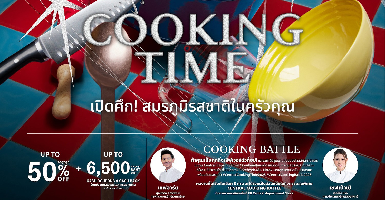 ห้างเซ็นทรัล ในเครือเซ็นทรัล รีเทล เอาใจสายคุกกิ้ง จัดงาน “CENTRAL COOKING TIME” รวมไอเทมเครื่องครัวแบบครบครันกับโปรโมชันลดสูงสุด 50% พร้อมเปิดศึกสมรภูมิรสชาติ ชวนคุ้กกิ้งเลิฟเวอร์โชว์สกิลทำอาหารในกิจกรรม “CENTRAL COOKING BATTLE” ชิงรางวัลรวมมูลค่ากว่า 150,000 บาท