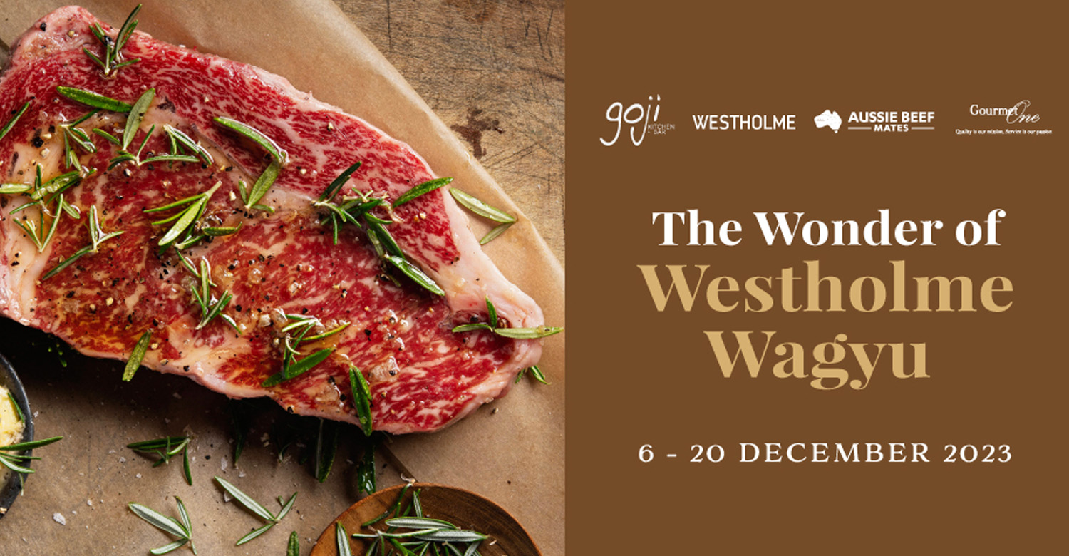 ในเดือนธันวาคมนี้ ห้องอาหารโกจิ คิทเช่น + บาร์ ได้ร่วมกับกูร์เมต์ วัน (Gourmet One) ผู้นำเข้าผลิตภัณฑ์ระดับพรีเมียมของออสเตรเลีย ได้หยิบยกวัตถุดิบเนื้อวากิวชั้นดี Westholme Wagyu จากออสเตรเลีย มาเป็นวัตถุดิบหลักในการรังสรรค์อาหารจานต่างๆ หลากหลายกรรมวิธี ตั้งแต่การหั่นเป็นชิ้น ทอด ตุ๋น ผัดและอีกมากมายรวมถึงการย่างบนเตาพาริลลา กริลล์