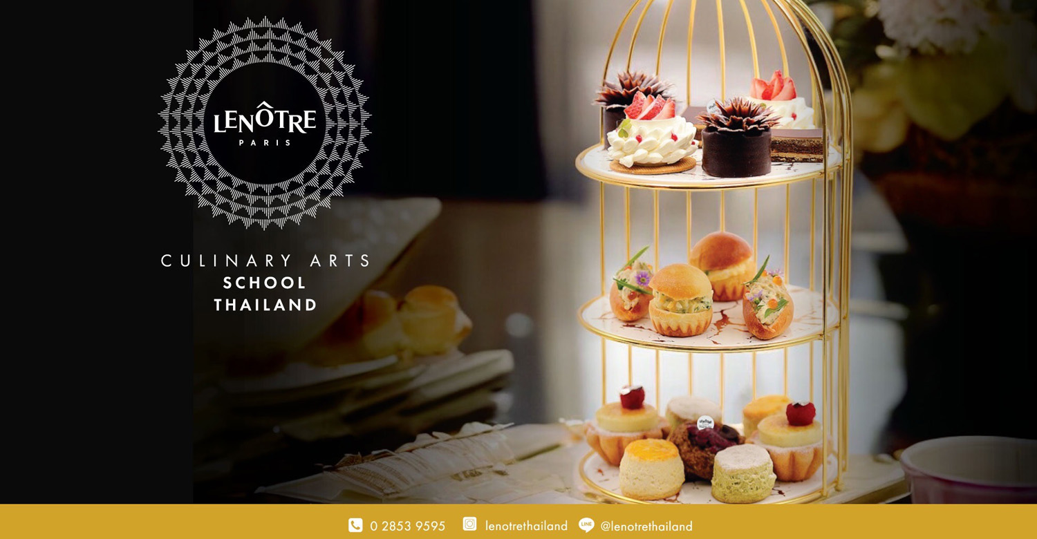 ผู้สนใจบริการ Afternoon Tea โรงเรียนสอนประกอบอาหาร เลอโนท ประเทศไทย โปรดสำรองที่นั่งล่วงหน้า 2 วัน สามารถสอบถามข้อมูลเพิ่มเติม โทร. 02 853 9595 หรือ LINE : @lenotrethailand ติดตามข่าวสารของโรงเรียนสอนประกอบอาหาร เลอโนท ประเทศไทย ได้ทาง www.facebook.com/LenotreThailand หรือ www.instagram.com/LenotreThailand และเว็บไซต์ www.lenotre.co.th