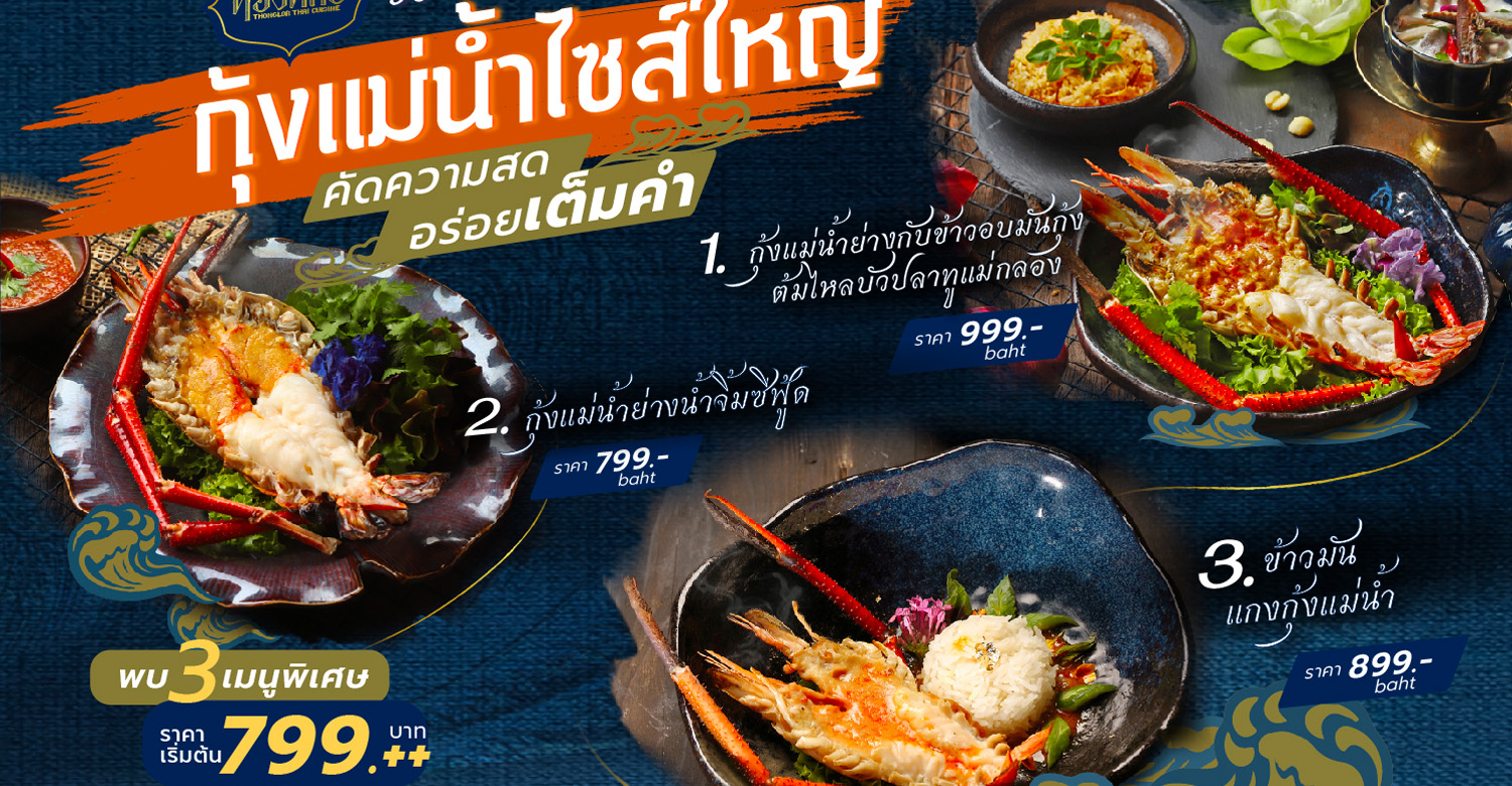 ร้านอาหารไทย “ทองหล่อ” ขอเอาใจคนรักกุ้งแม่น้ำไซส์ใหญ่ให้อิ่มอร่อยกันอย่างต่อเนื่องในแบบอะลาคาร์ต กับ 3 เมนูสุดพิเศษ ที่รังสรรค์โดยเชฟไทยรุ่นใหม่ ในแบบเมนูไทยพื้นบ้านและอาหารไทย 4 ภาค ในราคาเริ่มต้น 799 – 999 บาท ให้บริการตั้งแต่ วันนี้ – 31 สิงหาคม ศกนี้
