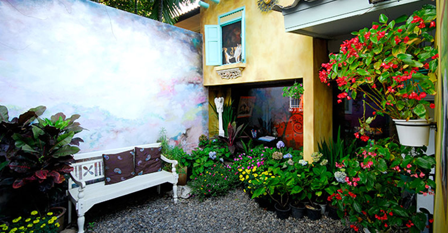 5.ในกรณีที่มีเนื้อที่หลังบ้านเหลือใช้มากพอ เราสามารถสร้างสรรค์มุมพักผ่อนให้กลายเป็นมุมส่วนตัวได้จะเลือกเพ้นท์กำแพงเพื่อให้สวนดูมีจุดเด่น พร้อมหาม้านั่งยาวสีขาวมาไว้นั่งเล่น โรยด้วยก้อนกรวดแทนการปลูกหญ้า เพราะสามารถดูแลได้ง่ายกว่า จากนั้นเลือกต้นไม้ที่มีขนาดพอเหมาะ จะเป็นไม้ดอกที่มีสีสันสดใสเพิ่มความสะดุดตาก็ได้ (แฟ้มภาพนิตยสาร @kitchen)