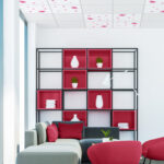 1. ครัวแพนทรีออกแบบเคาน์เตอร์ชิดผนัง ดีไซน์ตู้แขวน ช่องเก็บของ และลิ้นชักให้ขนาดพอดีกับเครื่องใช้ไฟฟ้าและอุปกรณ์ครัวที่มีอยู่ เลือกใช้หน้าบานโทนสีเทาและเพิ่มลูกเล่นด้วยผนังลายหินอ่อน ส่วนมุมโต๊ะกินข้าวเลือกใช้เป็นโต๊ะไม้สีเข้มแมตช์กับเก้าอี้หลายสีสันหลากดีไซน์ ช่วยให้ครัวดูอบอุ่นๆ และใช้งานได้อเนกประสงค์ วางของ นั่งเล่น นั่งกินข้าว รับรองแขก