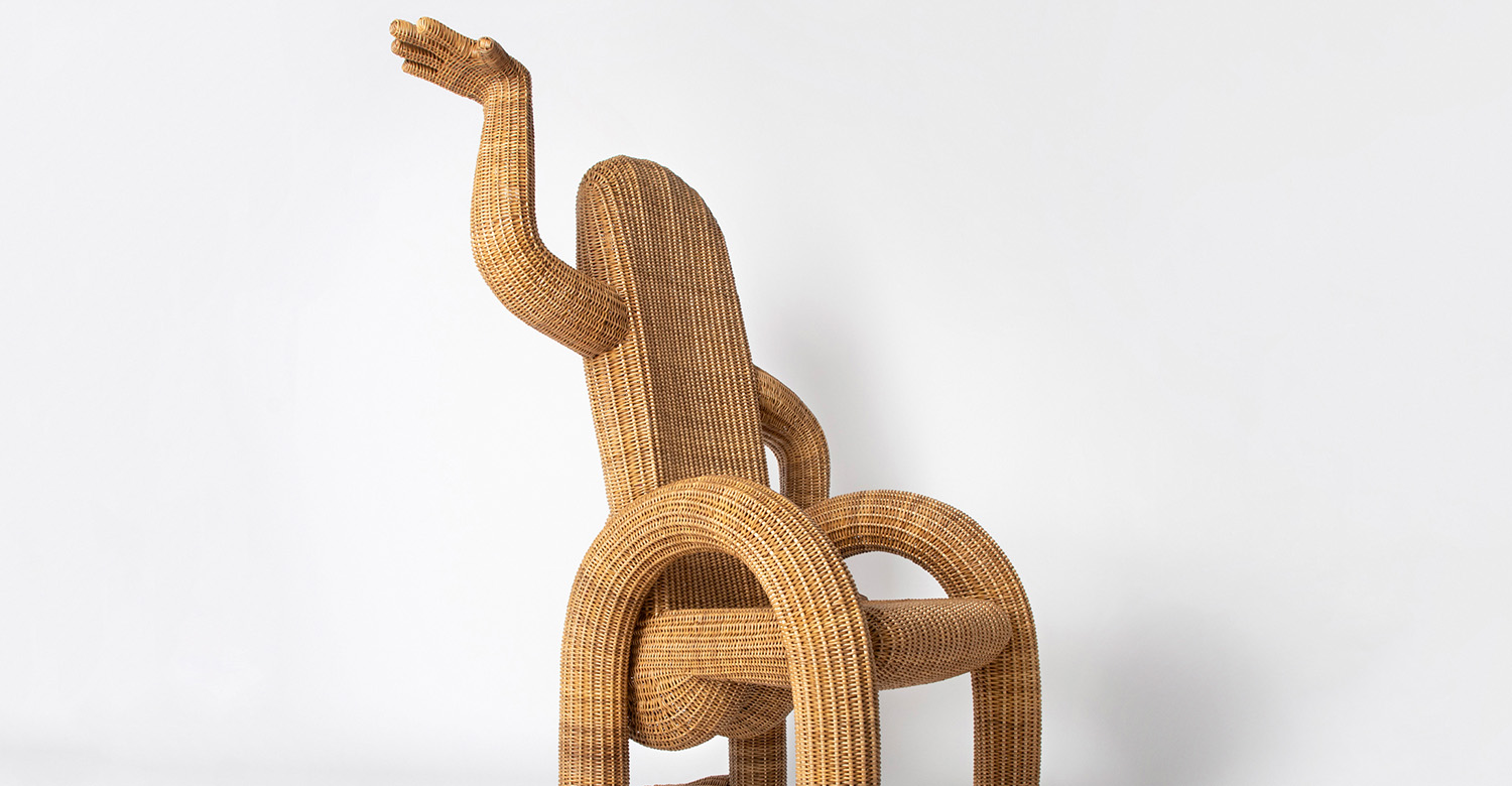 เป็นความคิดสนุกปนอารมณ์ขันใน 2 มุมมองของ Chris Wolston ศิลปินและนักออกแบบชาวอเมริกัน โดยแรงบันดาลใจอย่างแรกของเขามาจากการตั้งคำถามว่า ที่จริงแล้วเก้าอี้เป็นที่นั่ง เป็นเครื่องเรือนสำหรับผู้คน หรือผู้คนได้รับการโอบกอด ตระกองกอดจากเก้าอี้กันแน่นะ โดยเฉพาะเก้าอี้ที่มีครบองค์ประกอบทั้งเท้าแขนและพนักพิง ด้วยการตั้งคำถามนี้ Wolston สร้างสรรค์ผลงานเก้าอี้กึ่งงานประติมากรรมออกมาในหลากหลายเทคนิค ทั้งโลหะ ดินเผา และโครงเคร่าไม้กรุผ้า โดยเจ้าตัวจะเริ่มทำงานจากการศึกษารูปทรงที่คิดไว้ผ่านการปั้นด้วยตัวเองในห้องทำงานของเขา ก่อนจะปรับแบบให้เกิดชิ้นงานที่เป็นเก้าอี้ขึ้นมาได้