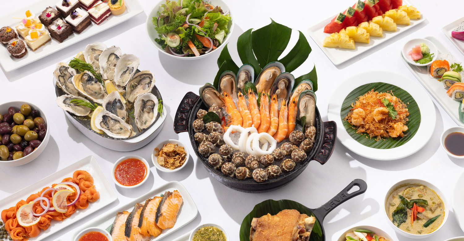 บุฟเฟ่ต์วันสงกรานต์ให้บริการในวันที่ 12 เมษายน 2568 ตั้งแต่เวลา 18.00 น. ถึง 22.30 น. และในวันที่ 13 เมษายน 2568 ตั้งแต่เวลา 12.00 น. ถึง 14.30 น. ราคาท่านละ 799++ บาท