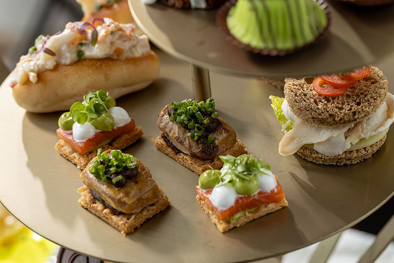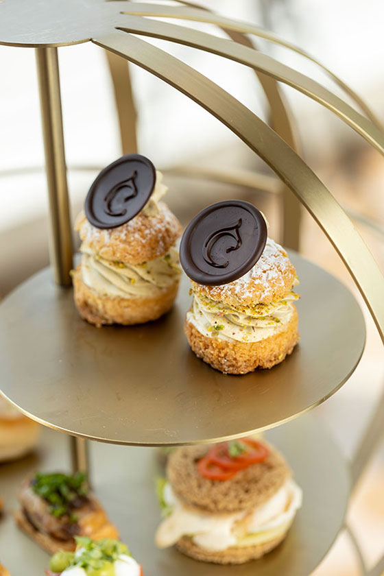 ลิ้มรสเมนูทั้งของคาว พร้อมของหวาน และดื่มด่ำบรรยากาศของร้านที่ตกแต่งในสไตล์โมเดิร์นให้คุณได้ถ่ายรูปกับมุมสวยพร้อมกับชุดน้ำชา มาปักหมุดในสไตล์ผู้ดีอังกฤษไปพร้อมกับเรากับรสชาติอาหารของชุดน้ำชายามบ่าย อาทิ สโคนเสิร์ฟพร้อมแยม และคล็อตเต็ดครีม, มิลล์เฟยแซลมอนรมควันกับครีมอาโวคาโดและครีมชีส, ตับห่านย่างเสิร์ฟพร้อมแยมหอมหัวใหญ่, นิวอิงแลนด์ล็อบสเตอร์โรล, ไก่งวงรมควันกรูแยร์ชีสและแยมแครนเบอร์รี, มาการอง, ชูว์ครีมฝรั่งเศสสอดไส้ครีมพิสตาชิโอ้, ช็อกโกแลตมิลล์เฟย, เค้กส้ม, ช็อกโกแลตพาร์ลีน พร้อมจับคู่กับเครื่องดื่มชาหรือกาแฟ