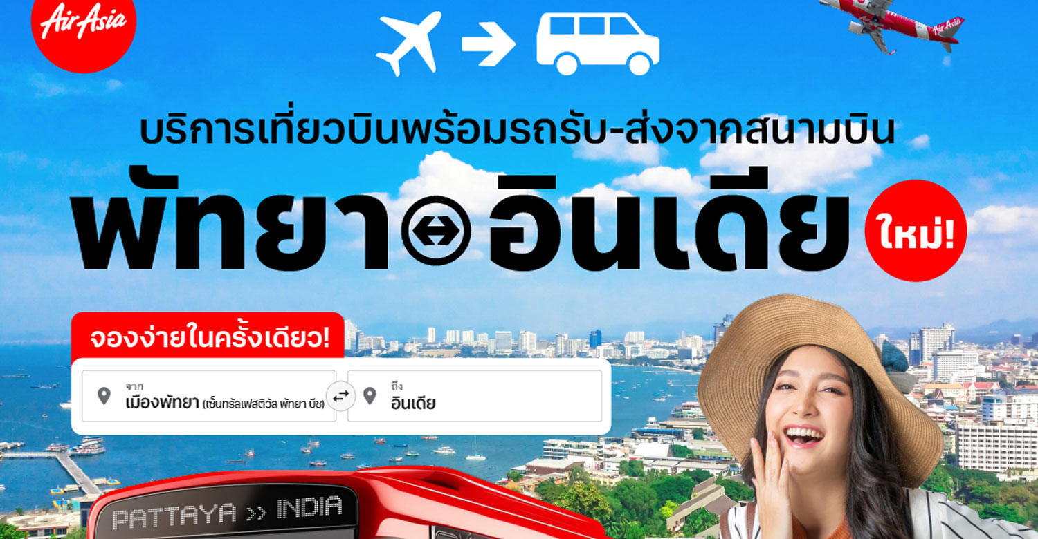 แอร์เอเชียเพิ่มบริการใหม่เอาใจชาวอินเดีย พร้อมให้บริการ เที่ยวบินพร้อมรถรับส่งจากสนามบิน เส้นทาง “อินเดีย-พัทยา” แบบไปกลับ ฉลองกระเเสตอบรับและตอกย้ำการเป็นสายการบินที่มีบินตรงเชื่อมต่ออินเดีย-ไทย มากที่สุด 13 ปลายทางอินเดีย เปิดให้สำรองที่นั่งเเล้วตั้งเเต่ 21 มีนาคม 2568 เฉพาะการจองผ่าน AirAsia MOVE หรือ www.airasia.com เริ่มให้บริการตั้งเเต่เดือนแห่งความสนุก เทศกาลสงกรานต์ 1 เมษายน 2568 เป็นต้นไป