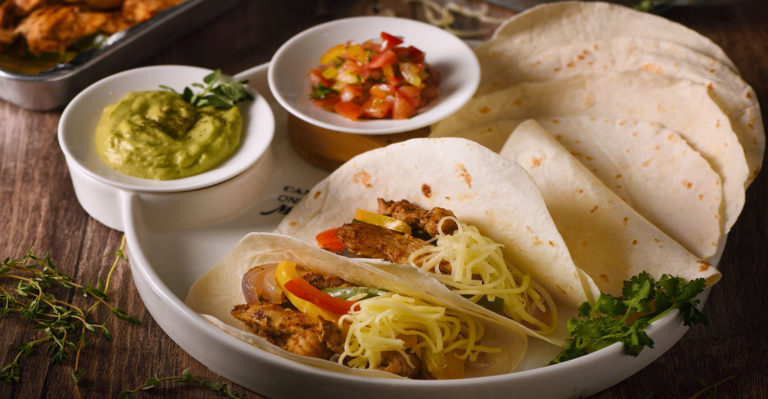 ชิกเก้นฟาจิตา เนื้อไก่หมักเครื่องเทศอบเสิร์ฟคู่แป้งตอร์ติญา