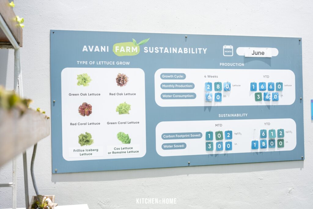 นอกจากนี้ Avani Farm ยังปลูกผักสลัดแบบไฮโดรโปนิกส์ เพื่อช่วยลดคาร์บอนฟุตพรินต์ เพราะเวลาเราสั่งผักสลัดส่วนใหญ่ต้องส่งมาจากต่างจังหวัด การปลูกเองจึงช่วยลดการขนส่งและลดผลกระทบต่อสิ่งแวดล้อมได้ แม้จะไม่ได้ปลูกในปริมาณที่เพียงพอต่อการใช้งานทุกวัน แต่ก็เป็นส่วนหนึ่งในการลดคาร์บอนฟุตพรินต์ และเรายังได้ร่วมมือกับฟาร์มใกล้เคียงในเขาชีจรรย์ ซึ่งเป็นฟาร์มปลูกผักไฮโดรโปนิกส์ขนาดใหญ่ เพื่อเป็นแหล่งเรียนรู้เพิ่มเติมสำหรับลูกค้าที่สนใจ โดยฟาร์มแห่งนี้ยังเน้นการใช้ปุ๋ยชีวภาพและวิธีการปลูกที่ปลอดภัยจากสารเคมีด้วยเช่นกัน
