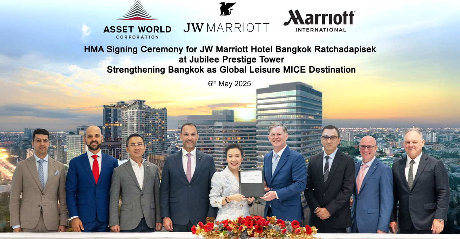 บริษัท แอสเสท เวิรด์ คอร์ป จำกัด (มหาชน) หรือ AWC ผู้พัฒนาอสังหาริมทรัพย์ของไทยที่มุ่งเน้นตอบสนองไลฟ์สไตล์แบบครบวงจร ลงนามข้อตกลงในการพัฒนาและบริหารโรงแรมกับ แมริออท อินเตอร์เนชันแนล (Marriott International) เตรียมเปิดตัว โรงแรม เจดับบลิว แมริออท แบงก์ค็อก รัชดาภิเษก (JW Marriott Hotel Bangkok Ratchadapisek) ณ Jubilee Prestige Tower จุดหมายปลายทางด้านการท่องเที่ยวเพื่อธุรกิจและพักผ่อนกลุ่ม Leisure MICE