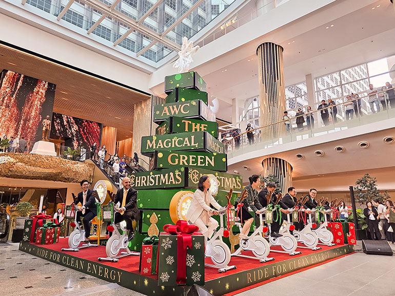 โครงการ“GIVE GREEN CBD” พลิกบทบาทอาคารสำนักงานและย่านธุรกิจให้เป็นมากกว่าสถานที่ทำงาน สู่การเป็นพื้นที่ชุมชนที่เปิดกว้างสำหรับทุกคนในการเฉลิมฉลอง แบ่งปัน และดูแลสุขภาวะร่วมกัน โดยมีกิจกรรมไฮไลต์ ได้แก่ “CBD Charity Christmas” การจัดแสดงต้นคริสต์มาสรักษ์โลกในธีม The Magical Green Christmas ที่ผสานแนวคิดด้านความยั่งยืนเข้ากับความคิดสร้างสรรค์ และ “AWC’s Charity Market Around” ตลาดนัดการกุศลที่ผนึกกำลังพันธมิตรกว่า 150 ราย ร่วมนำเสนอผลิตภัณฑ์เพื่อความยั่งยืนและสนับสนุนชุมชน จัดขึ้น ณ อาคาร “เอ็มไพร์” ใจกลางย่านธุรกิจสำคัญ (CBD) ของกรุงเทพมหานคร