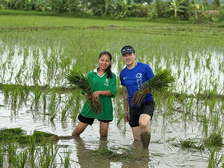 บมจ.กรุงไทย-แอกซ่า ประกันชีวิต นำโดย คุณณัฐพิสิษฐ์ ครุฑครองชัย ประธานเจ้าหน้าที่บริหาร และ คุณบุปผาวดี โอวรารินท์ ประธานเจ้าหน้าที่บริหาร ฝ่ายการตลาด นำทีมคณะผู้บริหาร พนักงาน และฝ่ายขายจิตอาสา ร่วมเดินหน้าสร้างความยั่งยืนให้กับชุมชน ผ่านกิจกรรมปลูกข้าว พร้อมทั้งมอบอุปกรณ์ไฟแสงสว่างระบบโซลาร์เซลล์และพันธุ์ปลานานาชนิด ภายใต้โครงการ “แผ่นดินทองเพื่อน้องๆ บ้านนานา ปีที่ 18” ณ. มูลนิธิพันธกิจเด็กและชุมชน บ้านนานา อ. แม่สาย จ. เชียงราย ซึ่งเป็นโครงการที่บริษัทฯ จัดทำอย่างต่อเนื่อง และช่วยสร้างรายได้ที่ยั่งยืน โดยสามารถช่วยสร้างผลผลิตข้าวให้แก่ชุมชนเพิ่มขึ้น จาก 2,000 ก.ก. ต่อปี เป็นมากกว่า 7,000 ก.ก. ต่อปี