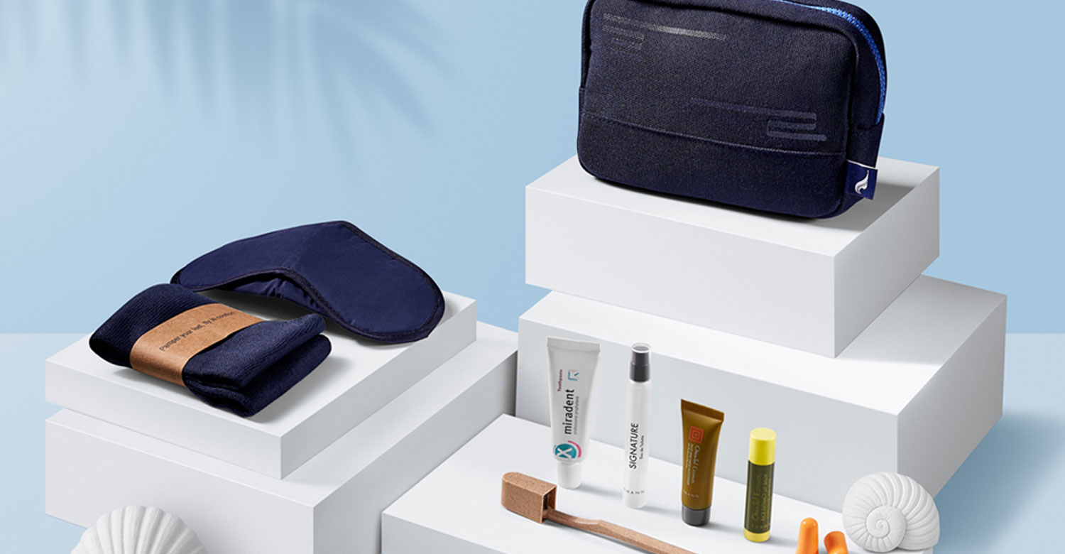 Amenity Kit ดีไซน์ใหม่นี้ ประกอบด้วย กระเป๋าผ้าลายปลาดาวสีฟ้า, ผ้าปิดตา, ถุงเท้า, แปรงสีฟัน, ยาสีฟัน, ที่อุดหู, ลิปบาล์ม, ครีมทามือ และน้ำหอม (Eau de Toilette) โดยจะเริ่มให้บริการบนเที่ยวบินระหว่างประเทศ ในเส้นทาง กรุงเทพฯ – มัลดีฟส์ และ เส้นทาง สมุย – ฮ่องกง