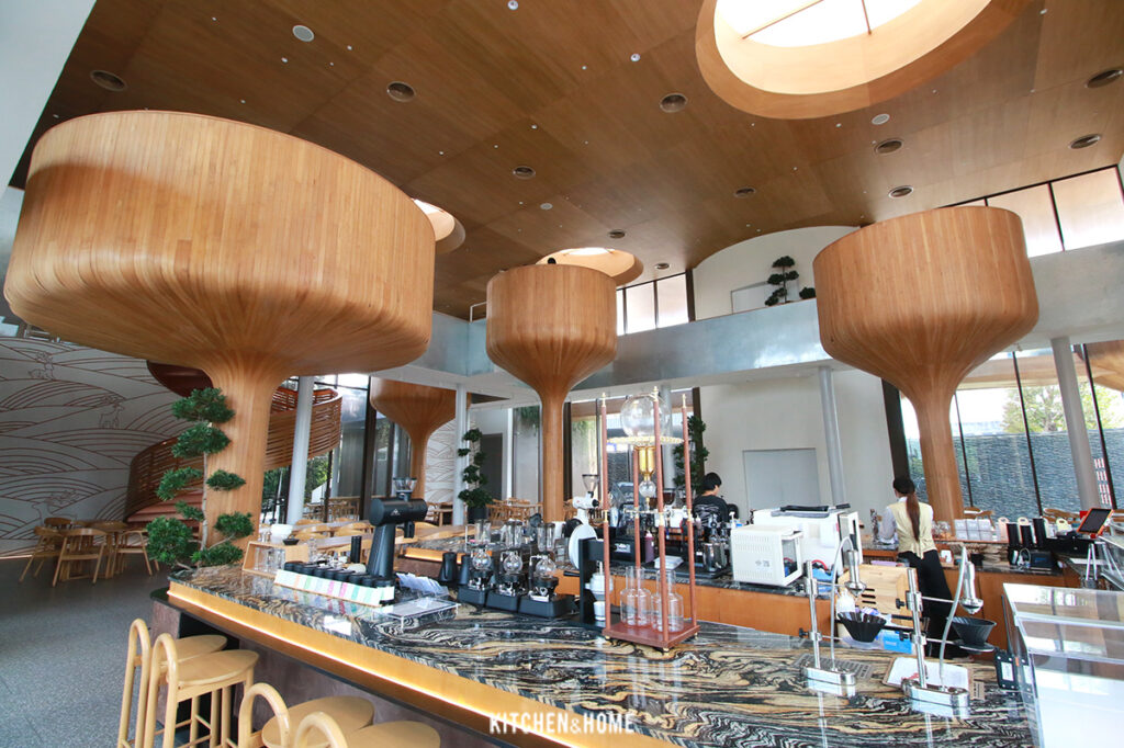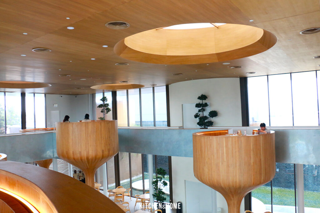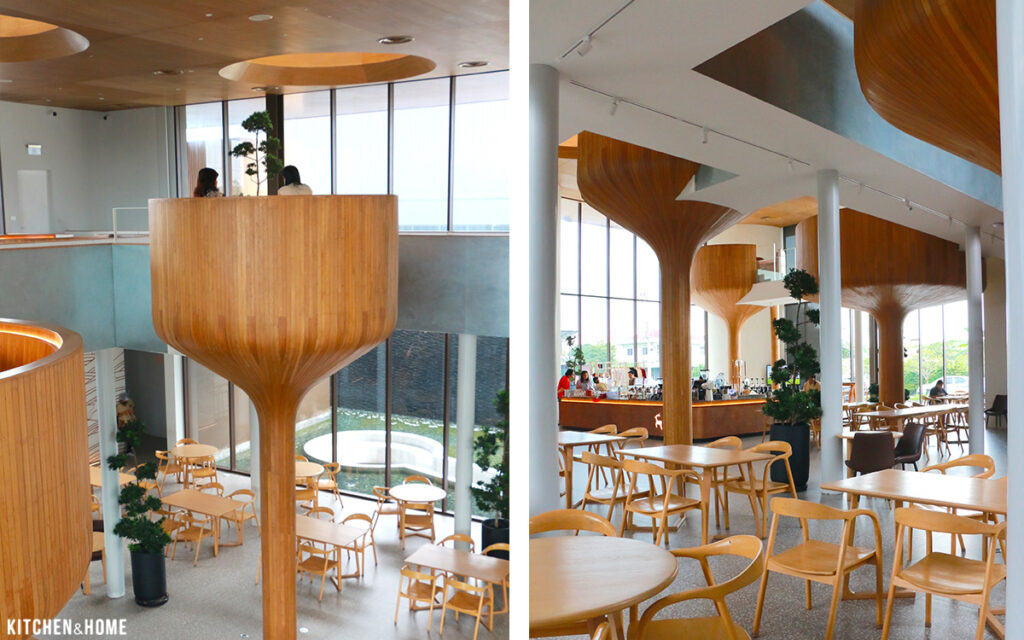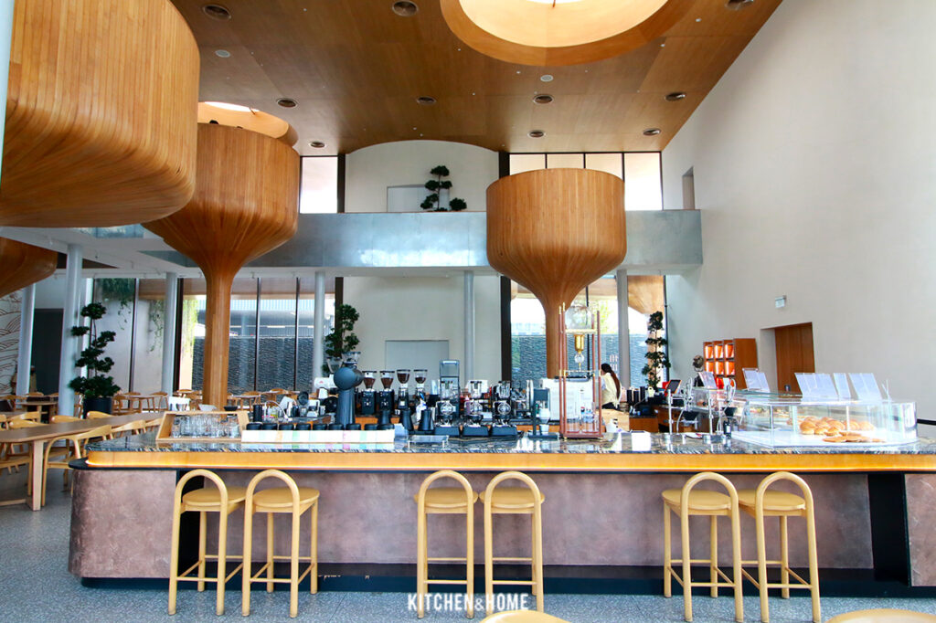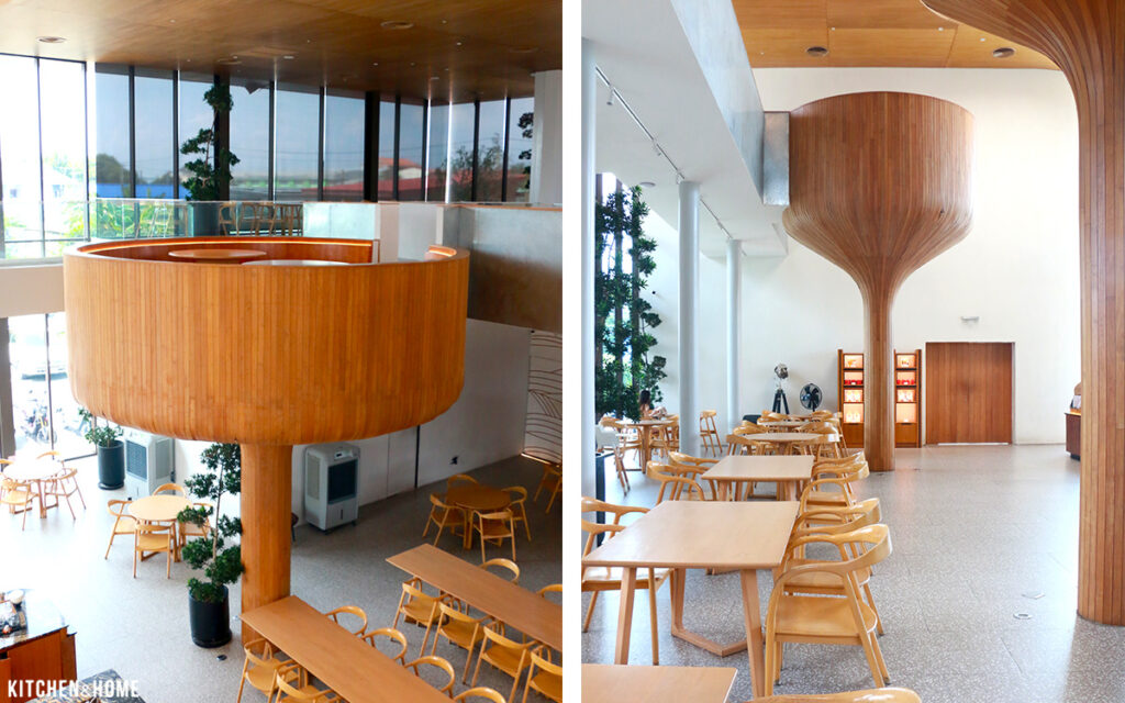 ที่ถูกถ่ายทอดผ่านสถาปัตยกรรมและบรรยากาศรอบตัว ตั้งแต่แสงธรรมชาติที่ส่องผ่านช่องสกายไลต์ เสียงน้ำตกเบาๆ ไปจนถึงกลิ่นไม้และกลิ่นกาแฟหอมๆ ทุกอย่างถูกจัดวางให้ธรรมชาติเข้ามาอยู่ในทุกประสาทสัมผัส ภายในร้านเป็นอาคารโอเพนสเปซสูงสองชั้น มีต้นไม้ใหญ่เป็นแรงบันดาลใจหลักของการออกแบบ โครงสร้างไม้และบันไดวนที่พาดขึ้นไปยังชั้นสองให้ความรู้สึกเหมือนเถาวัลย์ที่ค่อยๆ พาขึ้นไปสู่ร่มไม้ด้านบน มุมที่นั่งชั้นบนถูกออกแบบให้เป็น Semi-Private ให้ความรู้สึกสงบ แต่ยังมองเห็นความเคลื่อนไหวของคนในร้านได้อยู่