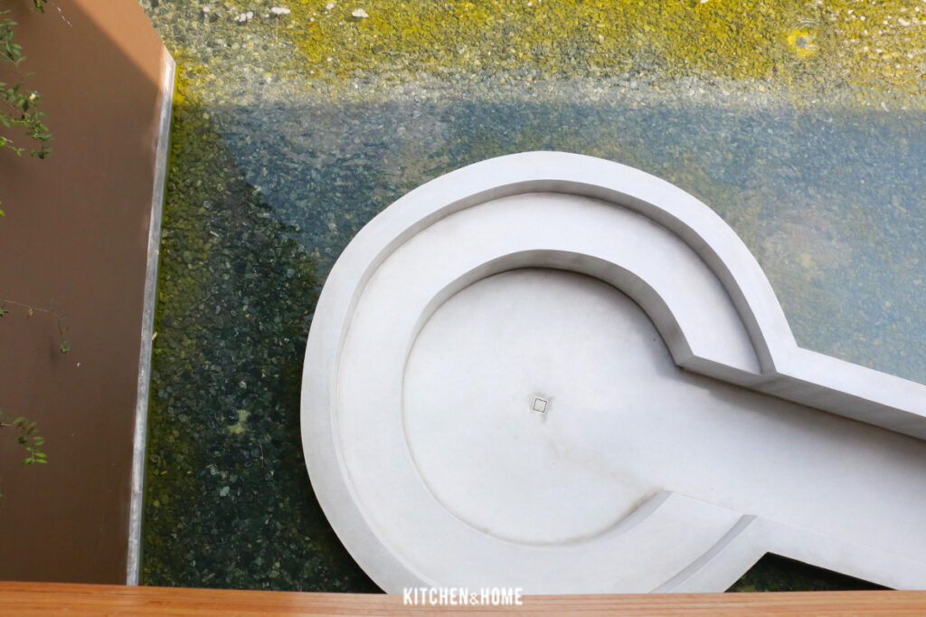 เดินออกไปด้านนอกคือโซนน้ำตกแบบ Sunken ที่ลดระดับที่นั่งลงเล็กน้อย ให้ความรู้สึกเหมือนกำลังนั่งริมธารน้ำกลางป่า เสียงน้ำที่ไหลเอื่อยๆ ช่วยทำให้เวลาช้าลงอย่างน่าประหลาด ส่วนด้านหลังยังมีสวนที่ปลูกไม้เลื้อยและต้นไม้เขียวทั่วพื้นที่ สร้างความรู้สึกสงบและร่มรื่นตลอดวัน
