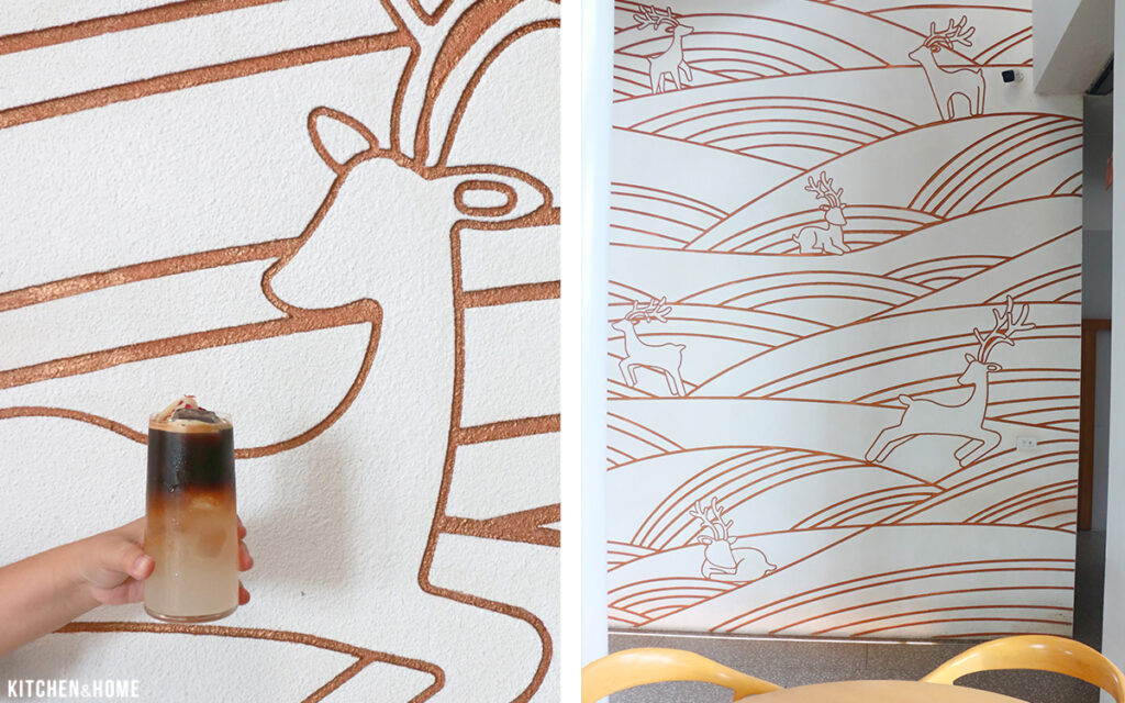 ส่วนกวางซึ่งเป็นสัญลักษณ์ของร้านก็ทำหน้าที่แทนความอุดมสมบูรณ์และชีวิตชีวาของป่า ปรากฏอยู่ในทุกรายละเอียดตั้งแต่โลโก้ งานตกแต่งภายใน ไปจนถึงภาชนะที่เสิร์ฟกาแฟ อัตลักษณ์เล็กๆ ที่ช่วยเชื่อมโยงแนวคิดป่าในเมืองให้ครบวงจรในทุกมิติของพื้นที่