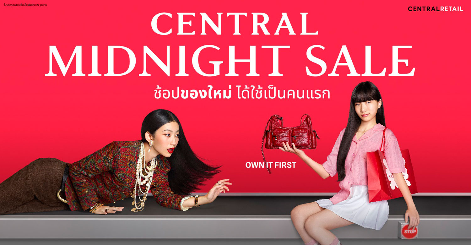 ห้างเซ็นทรัล ในเครือเซ็นทรัล รีเทล เดินหน้าสร้างประสบการณ์ช้อปปิ้งเจาะลูกค้าทุกกลุ่มเจเนอเรชัน เสิร์ฟแคมเปญใหญ่ “Central Midnight Sale – Own it First: ช้อปของใหม่ ได้ใช้เป็นคนแรก” ที่จะพลิกภาพจำของคำว่า “งานเซล” แบบเดิม ๆ ให้กลายเป็นโอกาสของผู้ที่มาก่อน เพราะงานนี้ ไม่ได้ลดแค่คอลเลกชันเดิม แต่ให้คุณได้สัมผัสสินค้า New Collections ก่อนใคร พร้อมข้อเสนอพิเศษและดีลแรงที่ไม่ควรพลาด จัดเต็ม 13 วัน ระหว่างวันที่ 24 กันยายน – 6 ตุลาคม 2568 โดยลูกค้าจะได้พบกับแบรนด์แฟชั่น บิวตี้ ไลฟ์สไตล์ ชั้นนำพร้อมดีลดีลดสูงสุด 30% พร้อมสิทธิประโยชน์รวมสูงสุด 50% และโปรโมชันอื่นๆ อีกมากมาย