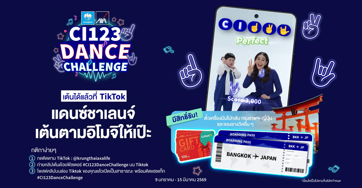บมจ.กรุงไทย-แอกซ่า ประกันชีวิต ขอเชิญชวนทุกท่านร่วมแดนซ์ชาเลนจ์ กับน้องเกล และคุณชมพู่ อารยา ในกิจกรรม “CI 123 Dance Challenge” บนแพลตฟอร์ม TikTok โดยชวนมาร่วมเต้นให้สนุก พร้อมสุขภาพดี ผ่านการเต้นตามอีโมจิด้วยฟิลเตอร์เฉพาะของแคมเปญ ซึ่งฟิลเตอร์ดังกล่าวจะมีคะแนนเมื่อท่านเต้นตรงจังหวะและถูกท่าทาง