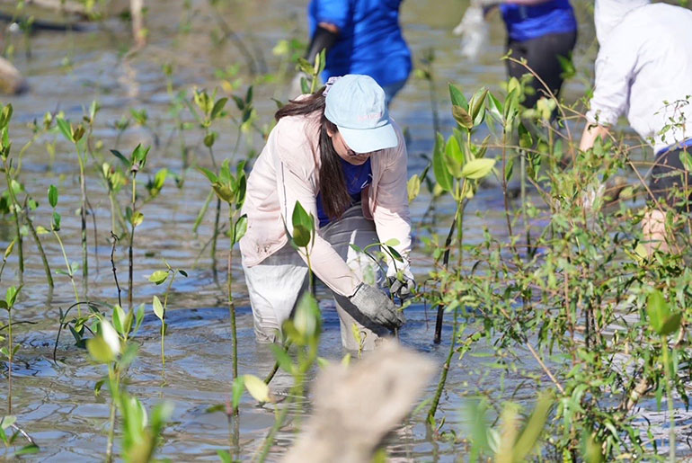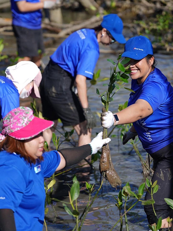 โดยป่าชายเลนเป็นทรัพยากรธรรมชาติที่สำคัญที่จะช่วยดูดซับคาร์บอนไดออกไซด์ในอากาศ และการปลูกป่าชายเลน เป็นการฟื้นฟูเพื่อรักษาสมดุลระบบนิเวศทางท้องทะเล ซึ่งสอดคล้องกับความมุ่งมั่นในการฟื้นฟูเรื่องของอากาศของบริษัทฯ เนื่องจากมลพิษทางอากาศที่มีความรุนแรงขึ้นอย่างต่อเนื่อง บริษัทฯ จึงให้ความสำคัญในการฟื้นฟูอากาศบริสุทธิ์คืนสู่โลก เพื่อสร้างสมดุลให้ระบบนิเวศอย่างยั่งยืน