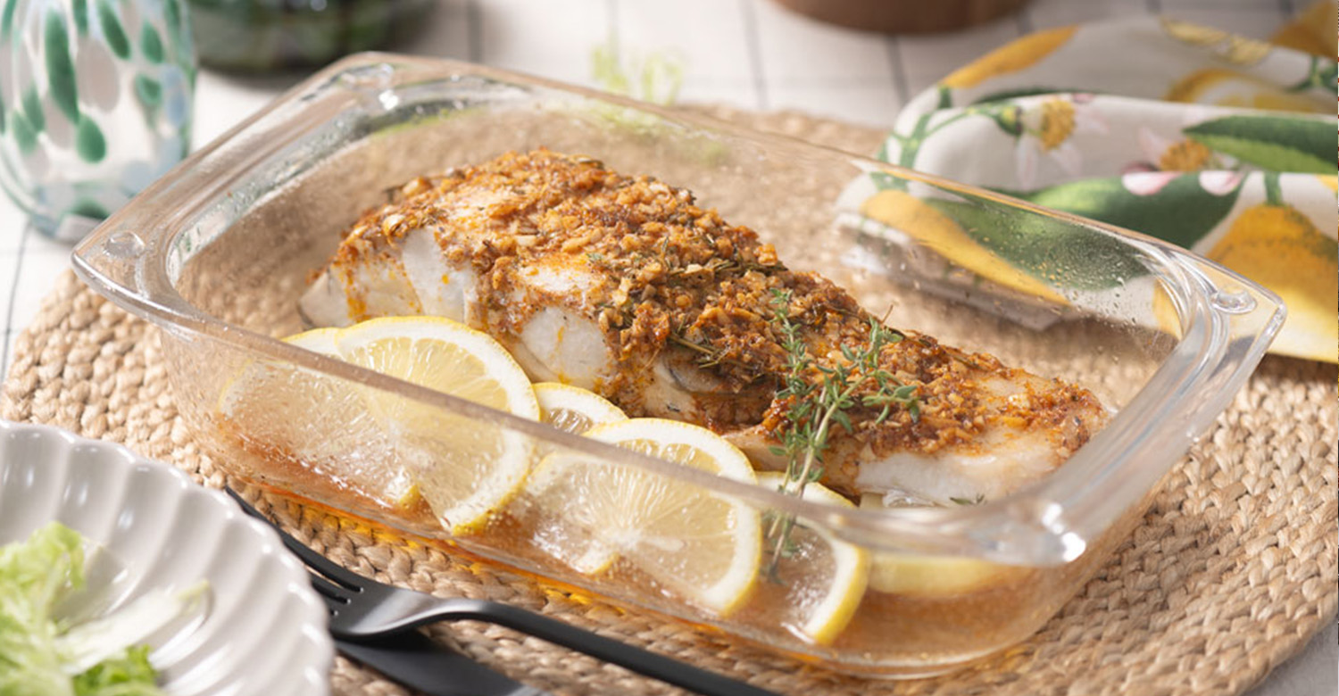 1.เปิดเตาอบเตรียมไว้ที่อุณหภูมิ 180 องศาเซลเซียส นำเนื้อปลากะพงไปล้างแล้วซับให้แห้ง