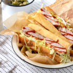 แซนด์วิชหมูก้อนสอดไส้กุ้ง ราดด้วยซอสบาร์บีคิวทำเอง อร่อยโดนใจ