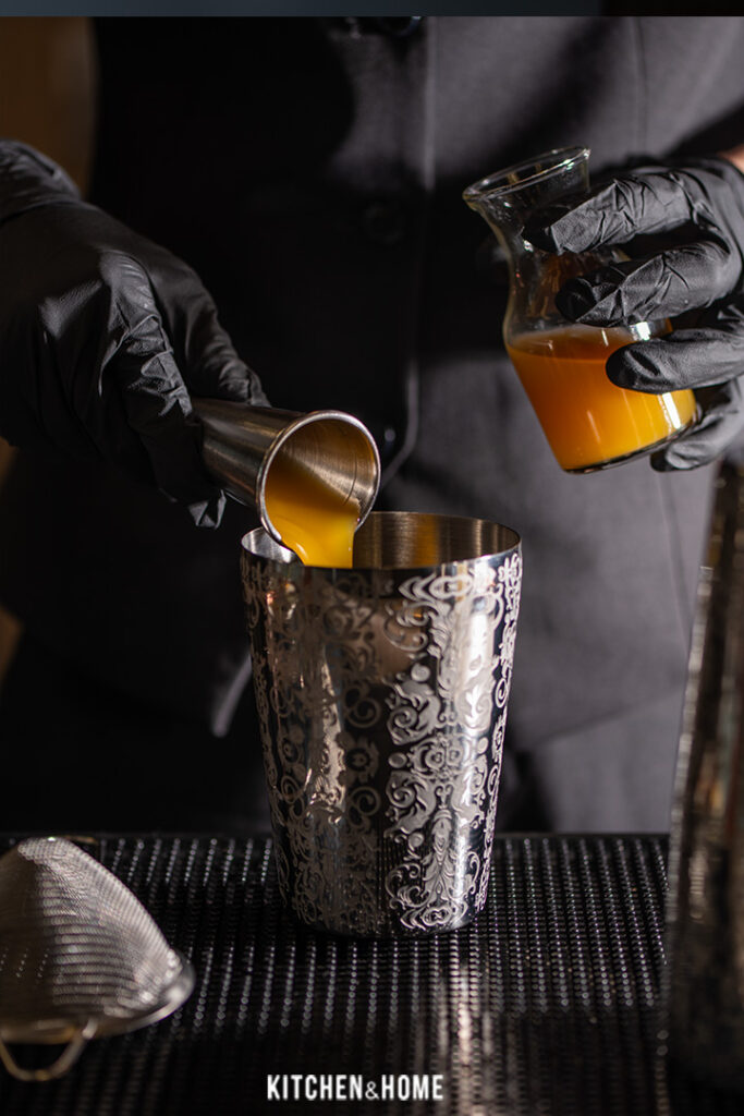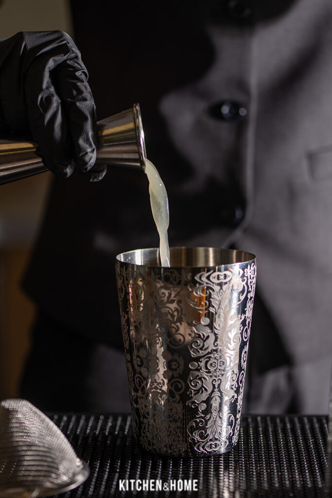 1.ตวงส่วนผสมทั้งหมดลงในกระบอกเชก ใส่น้ำแข็งลงไป 2/3 ของกระบอก