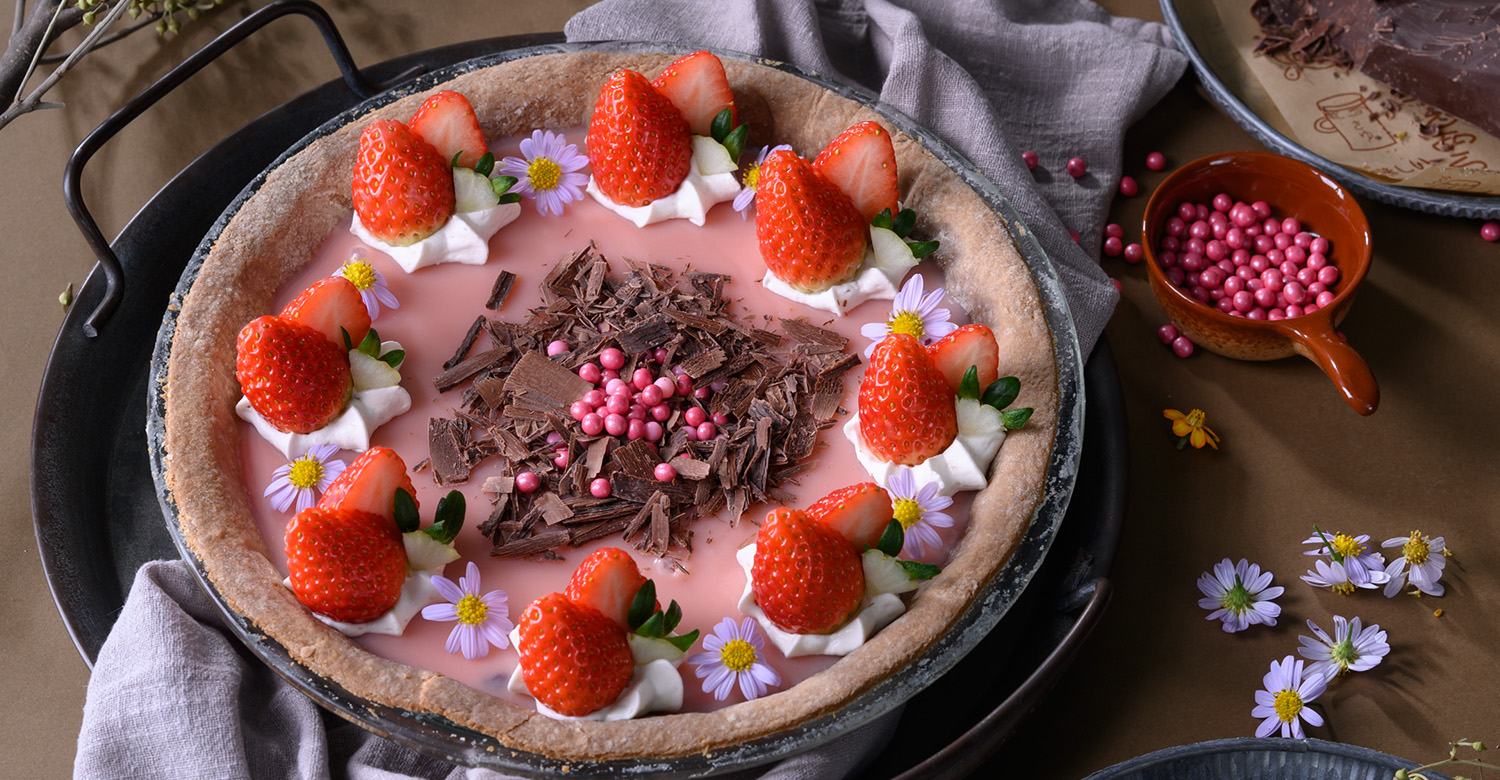 เมนูทาร์ตเป็นขนมอีกหนึ่งอีกหนึ่งชนิดที่คนชอบกินกันมาก ด้วยเท็กซ์เจอร์ที่ได้ทั้งความกรุบกรอบจากแป้งทาร์ตผสมกับเนื้อครีม ซึ่งครั้งนี้เราจะชวนทุกคนมาลองทำทาร์ตครีมสตรอว์เบอร์รีกัน นอกจากจะได้ความนุ่มหอมจากสตรอว์เบอร์รีแล้ว เรายังเพิ่มลูกเล่นด้วยแครนเบอร์รีแห้ง รูบี้ช็อกโกแลต และตกแต่งด้วยผลสตรอว์เบอร์รีสด เพื่อให้ทาร์ตของเราออกมาดูน่ากินและสวยด้วย