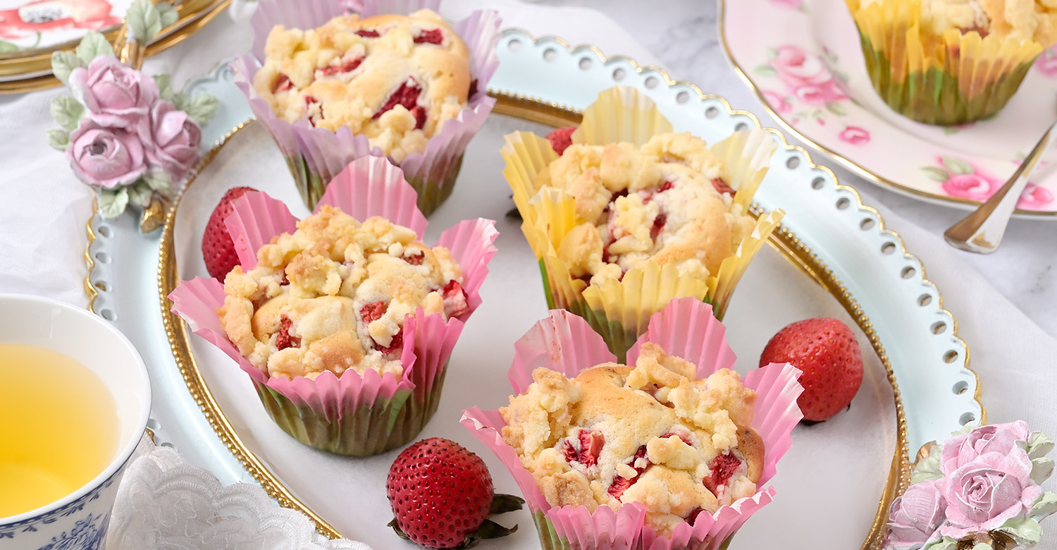 คัปเค้กครัมเบิลกรุบกรอบ ได้รสหวานอมเปรี้ยวจากสตรอว์เบอร์รีสด