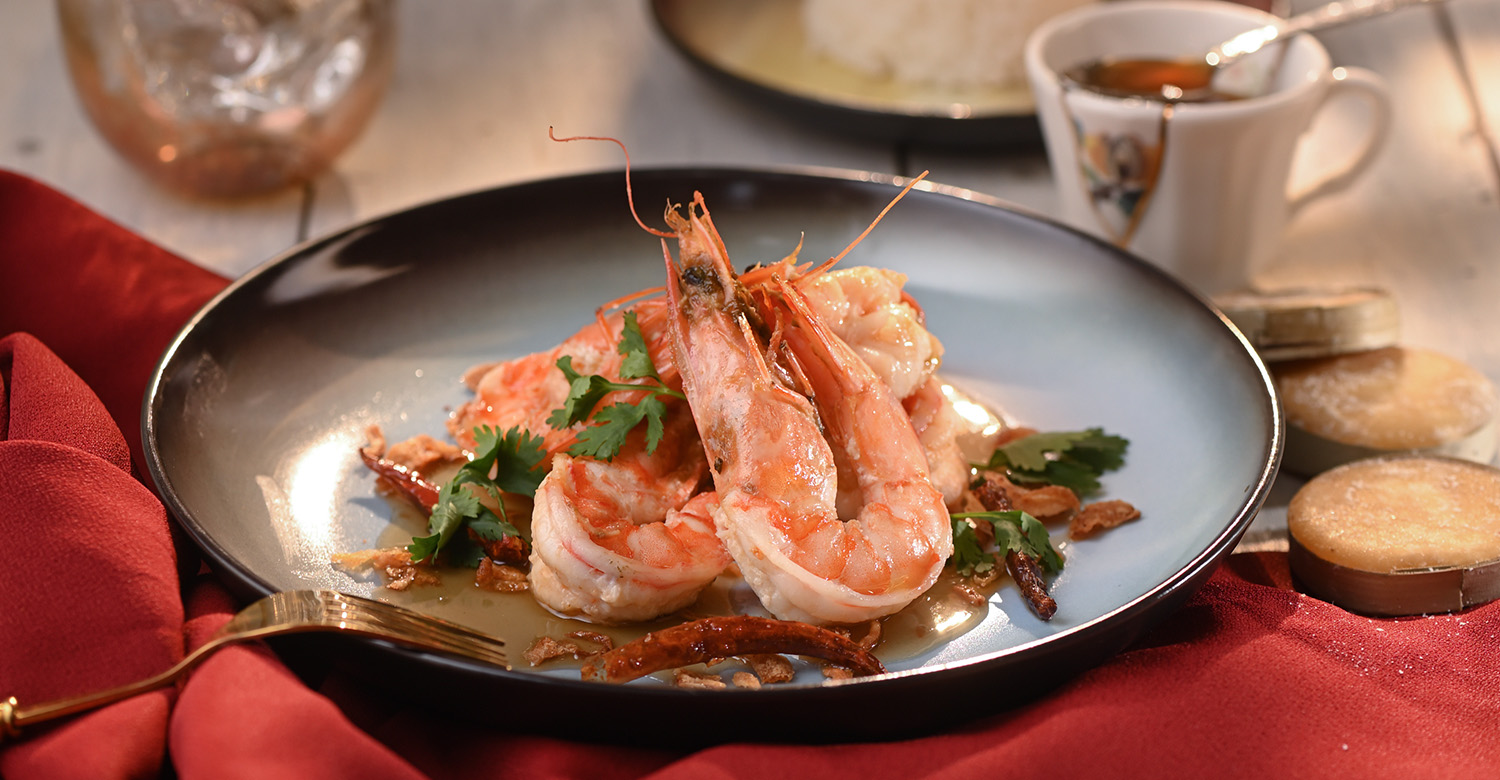 สำรับไทย กุ้งทอดราดซอสมะขาม