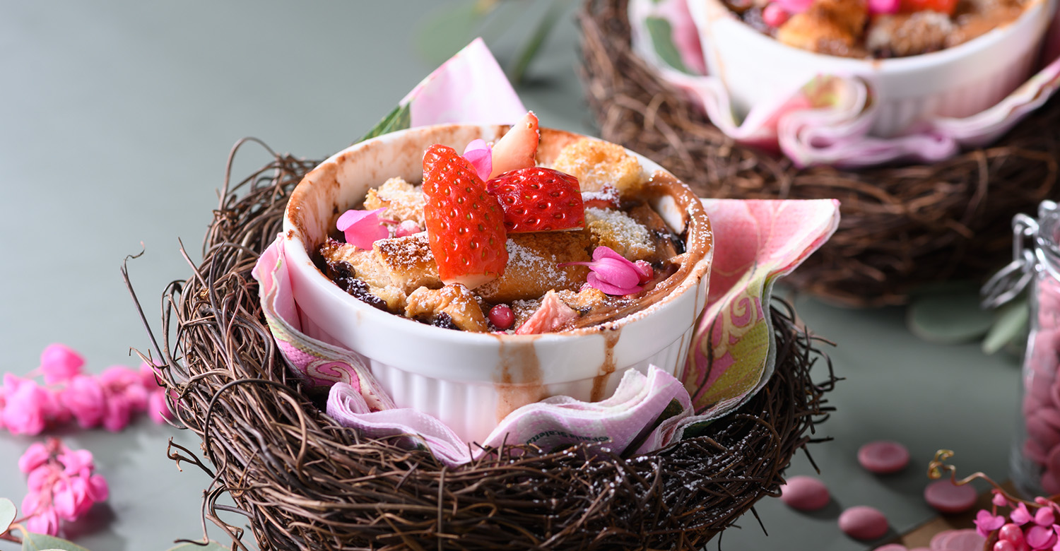 พุดดิงขนมปังที่ใส่ช็อกโกแลตแบบจัดเต็ม