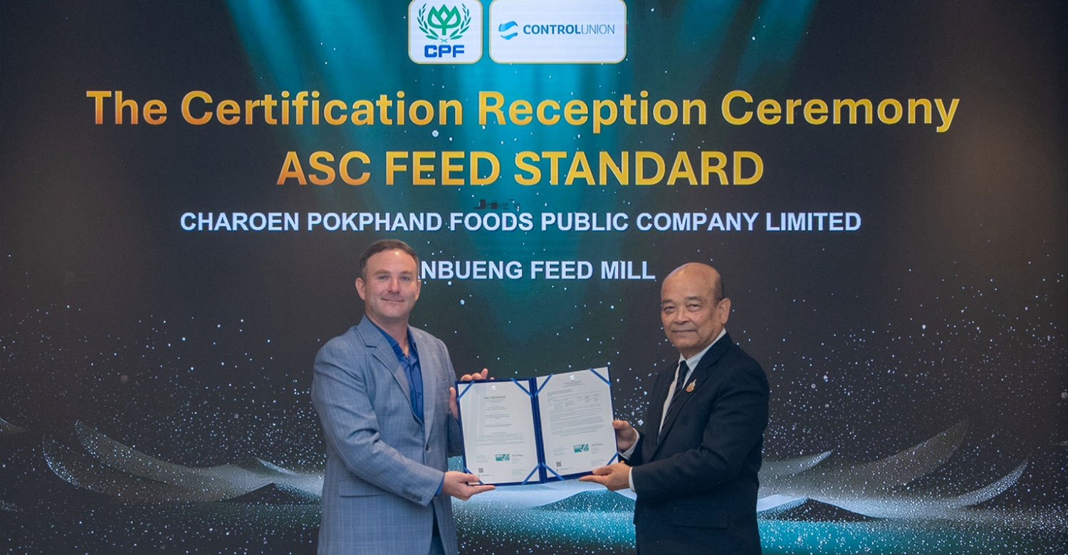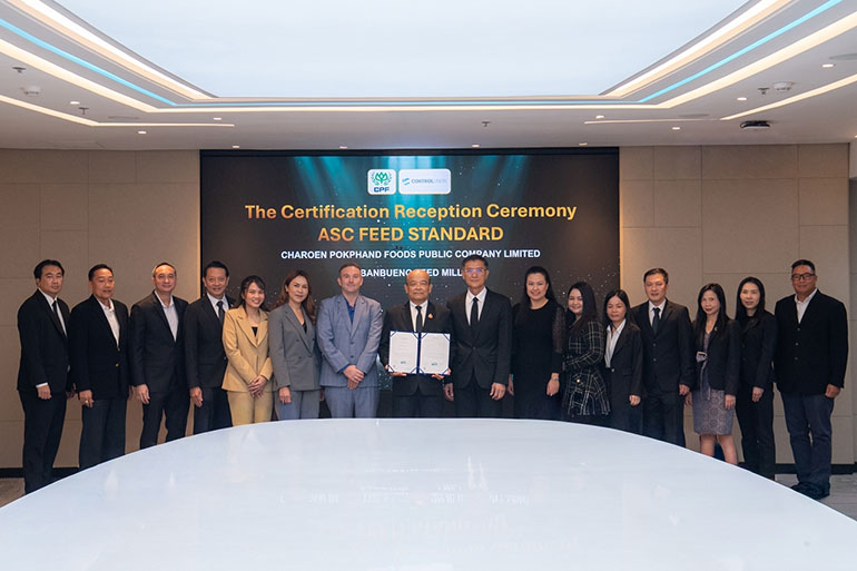 ล่าสุด ธุรกิจสัตว์น้ำ ซีพีเอฟ โดยโรงงานอาหารสัตว์น้ำบ้านบึง ตั้งอยู่ในจังหวัดชลบุรี ได้รับการรับรอง ASC Feed Standard จากองค์กร Aquaculture Stewardship Council หรือ ASC ซึ่งเป็นมาตรฐานสากลที่ลูกค้าและผู้บริโภคทั่วโลกยอมรับว่าเป็นมาตรฐานที่เข้มงวด มีแนวปฏิบัติที่รับผิดชอบและโปร่งใส ครอบคลุมทุกมิติ โดยมี น.สพ.สุจินต์ ธรรมศาสตร์ ประธานผู้บริหารฝ่ายปฏิบัติการธุรกิจสัตว์น้ำ ซีพีเอฟ รับมอบใบรับรองมาตรฐานจาก นายสเตฟาน ฟรองซัว แอล มอริลส กรรมการผู้จัดการ บริษัท คอนโทรล ยูเนี่ยน (ประเทศไทย) จำกัด หน่วยงานรับรองมาตรฐานที่ได้รับอนุมัติจาก ASC