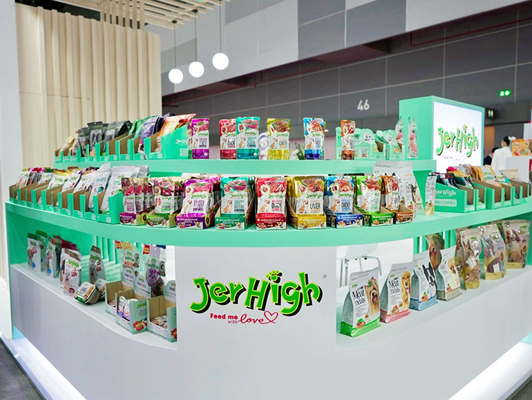 ไฮไลท์ผลิตภัณฑ์ใหม่ที่นำมาจัดแสดง ได้แก่ ‘เจอร์ไฮ ไทย เทสต์’ (JerHigh Thai Taste) ภายใต้แนวคิด “กลิ่นหอม รสชาติไทยแท้ สุนัขชอบ คนจำได้” สะท้อนเอกลักษณ์ความเป็นไทย มุ่งเจาะตลาดพรีเมียมในเอเชียและตะวันออกกลาง เตรียมเปิดตัวเชิงพาณิชย์ในไตรมาส 1 ปี 2569 และ ‘จินนี่ นูริช’ (Jinny Nourish) อาหารแมวเปียกเกรดซูเปอร์พรีเมียมแบบซองพัฒนาสูตรเฉพาะสำหรับแต่ละช่วงวัยของแมว โดยใช้ส่วนผสมจากปลาทูน่าธรรมชาติและเนื้อไก่สดคุณภาพสูง ปราศจากกลูเตนและข้าวสาลี ตอบสนองเทรนด์ “Functional Nutrition” โภชนาการเพื่อการดูแลสุขภาพเฉพาะด้านที่เติบโตอย่างรวดเร็วในตลาดโลก