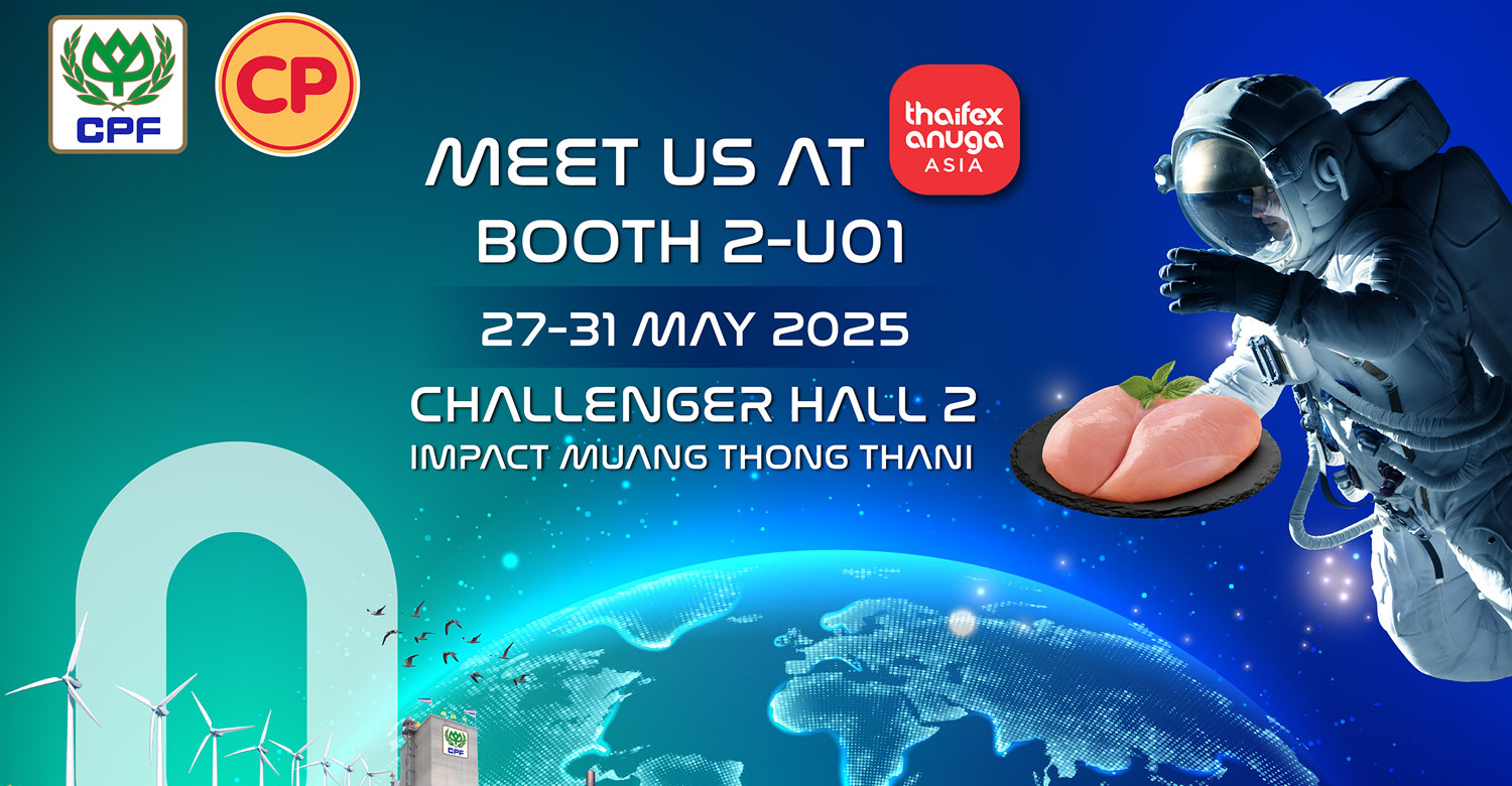 บริษัท เจริญโภคภัณฑ์อาหาร จำกัด (มหาชน) หรือ ซีพีเอฟ ยกทัพนวัตกรรมอาหารระดับโลก ร่วมงาน THAIFEX – Anuga Asia 2025 ภายใต้คอนเซ็ปต์ “KITCHEN OF THE WORLD : QUALITY THROUGH SUSTAINOVATION” ที่ผสานคุณภาพ ความยั่งยืน และความคิดสร้างสรรค์ไว้อย่างลงตัว ชวนคู่ค้าและผู้บริโภคสัมผัสกับความอร่อยที่โดนใจคนทั่วโลก ในงาน THAIFEX – Anuga Asia 2025 ณ อาคารชาเลนเจอร์ ฮอลล์ 2 ศูนย์แสดงสินค้าอิมแพ็ค เมืองทองธานี ระหว่างวันที่ 27 – 31 พฤษภาคม 2568