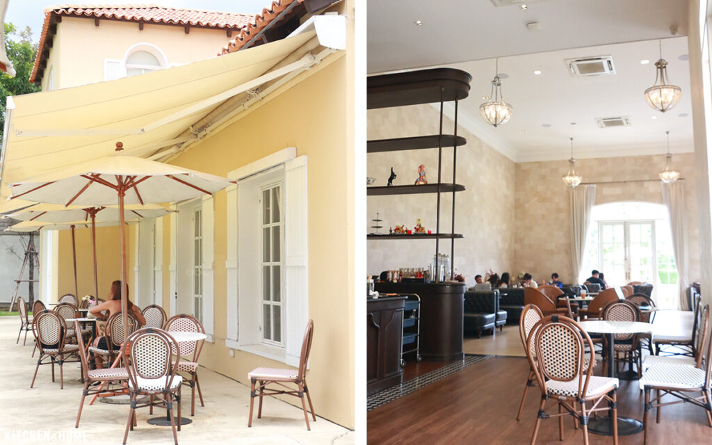 ที่นี่ถูกดีไซน์ให้เหมือนยกหมู่บ้านชานเมืองฝรั่งเศสมาตั้งไว้บนพื้นที่กว่า 5 ไร่ รายล้อมด้วยอาคารสไตล์ยุโรปสีเหลืองที่ได้รับแรงบันดาลใจจากเมือง Bordeaux ประเทศฝรั่งเศส พร้อมสนามหญ้าและบ่อบัวที่กว้างใหญ่ บรรยากาศโดยรอบให้ความรู้สึกผ่อนคลายเหมือนวาร์ปไปต่างประเทศ การตกแต่งและบรรยากาศ ตัวอาคารหลักออกแบบโดยทีม STUDIO128 ที่ขึ้นชื่อด้านการออกแบบเฟอร์นิเจอร์หนังระดับโลก ภายในร้านจึงเต็มไปด้วยเฟอร์นิเจอร์คุณภาพจาก P9 Furniture by STUDIO128 นั่งสบายจนไม่อยากลุกออกไปไหน การตกแต่งเน้นความหรูหราสไตล์ปารีเซียง เหมาะทั้งสำหรับมานั่งทำงาน อ่านหนังสือ หรือจะจิบกาแฟคุยกับเพื่อนเพลินๆ
