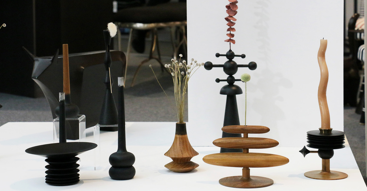 นี่คืออีกหนึ่งเหตุผลที่ทำไมถึงเล่นกับดีไซน์ที่เป็นแจกันและวัสดุไม้ ผมมองว่าไม้เป็นเรื่องของความยั่งยืน สะท้อนถึงความอบอุ่น และไม้บางตัวที่เป็นซี่เล็กๆ ผมก็เอามาจากเศษไม้เหลือจากการสร้างบ้าน โดยเอามาขึ้นกลึงใหม่ หรือความอยากลองทำของจากเศษวัสดุที่ได้จากบ้านที่ถูกรื้อทิ้ง เราก็ไปซื้อมาตามขนาดที่ต้องการ ซึ่งจะมีทั้งไม้ดีหรือแม้กระทั่งไม้ไม่ดีเราก็นำมาขึ้นกลึงใหม่ได้ นอกจากวัสดุไม้ เรามีกระจก ผ้า และทองเหลืองเข้ามาผสมผสานในชิ้นงานด้วย เป็นที่มาให้เราเริ่มต้นจากของตกแต่งชิ้นเล็กๆ เพื่อให้คนทั่วไปได้มองเห็นภาพรวมผลงานเราเองในภาพลักษณ์ของประติมากรรมเป็นหลัก โดยมีฟังก์ชันเป็นเรื่องรอง