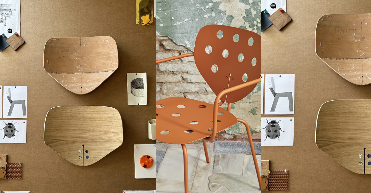 ชื่อ Marietta เป็นชื่อที่มักใช้ตั้งให้เด็กหญิงในความหมายของผู้เป็นที่รักในภาษาฝรั่งเศส และเก้าอี้ในคอลเล็กชันนี้ได้รับการออกแบบมาให้สามารถซ้อนกันได้ โดยพนักพิงและแผ่นรองนั่งมีทั้งแบบกรุเบาะ ไม้อัดดัดโค้ง และอะลูมิเนียม