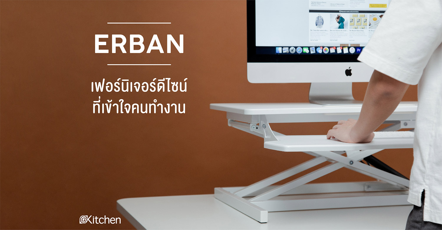 “ตอนเริ่มทำแบรนด์ Erban จากปัญหาที่พบเจอด้วยตัวเอง เรารีเสิร์ชมาก่อนว่าจริงๆ แล้วที่เราชินกับการยืนทำงานนั้นมีงานวิจัยทางวิทยาศาสตร์รองรับหรือไม่ว่าทำไมเราถึงรู้สึกว่าการยืนทำงานมันดีกว่า ผลลัพธ์คือนอกจากเรื่อง Ergonomic ที่เราจะรู้ตัวเกี่ยวกับท่าทางในการทำงานมากขึ้น และมีประโยชน์ทางอ้อมที่ช่วยปรับการเคลื่อนไหวของร่างกายตัวเอง เพราะไม่มีทางที่คนเราจะนั่งจ้องจอคอมพิวเตอร์ทำงานได้ตลอด 8 ชั่วโมง สมมุติถ้าร่างกายเปลี่ยนท่าทางบ้าง สมองเราจะสามารถคิดสิ่งใหม่ๆ และครีเอทีฟมากขึ้นได้ เป็นที่มาของเฟอร์นิเจอร์ที่ตั้งใจไว้ใช้เองในตอนแรก”