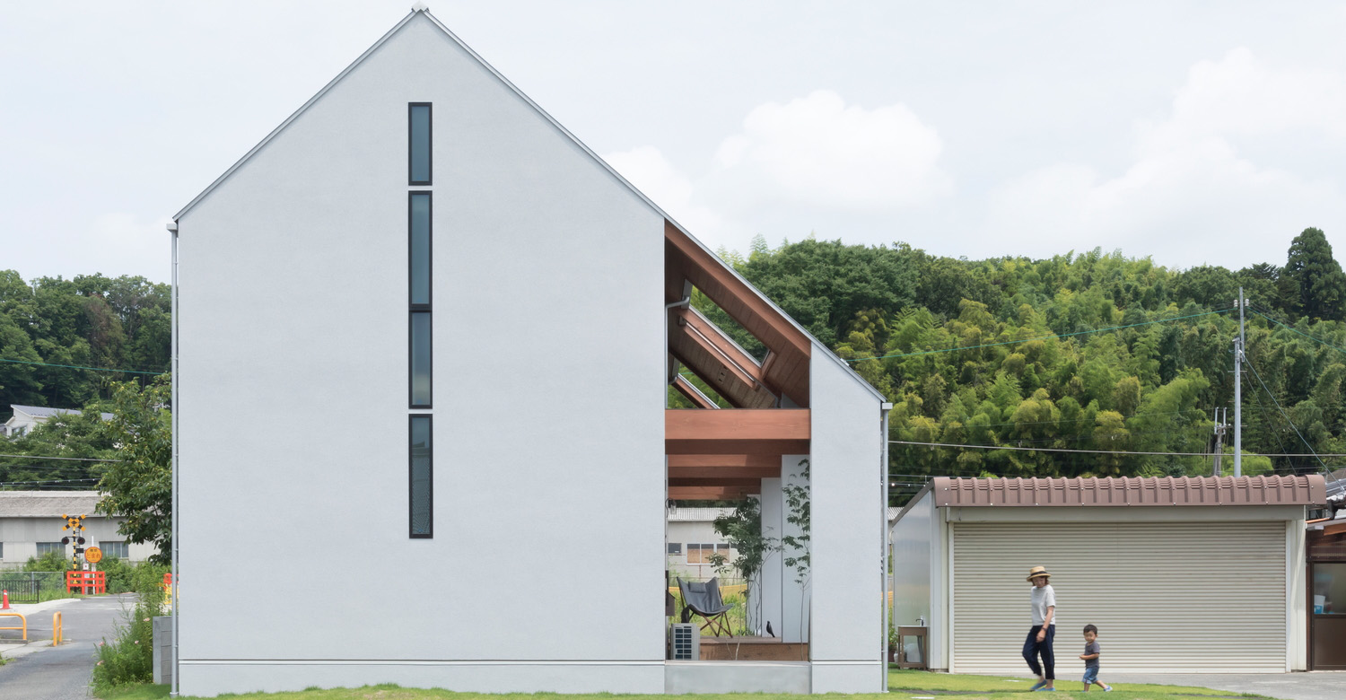 บ้านหลังนี้อยู่ในประเทศญี่ปุ่นตั้งอยู่ท่ามกลางสภาพแวดล้อมที่เต็มไปด้วยบ้านและอาคารบ้านเรือนเก่าหลายๆ หลังก็จริง แต่ไม่ได้รู้สึกแปลกแยกหรือโดดเด่นต่างจากหลังอื่นๆ ออกแบบเป็นบ้านทรงจั่วที่มีความพิเศษตรงที่สถาปนิกได้ขยายชายคาออกมาทางด้านข้าง เพื่อเพิ่มพื้นที่ให้กับสมาชิกในครอบครัวได้มีพื้นที่สำหรับกจิกรรมกลางแจ้ง