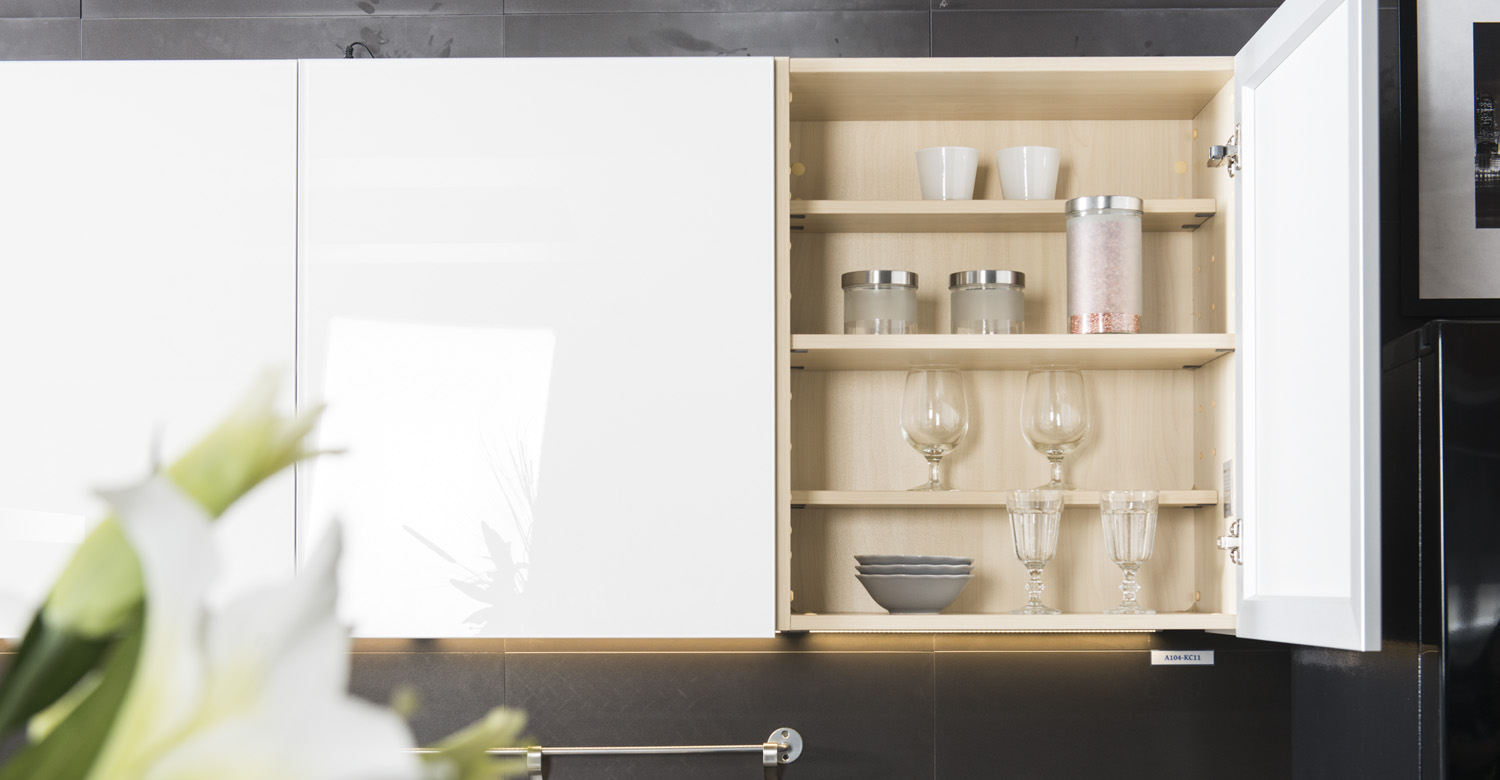 นอกจากนี้ก็ยังมีตู้แขวนที่มีหน้าบานเปิดปิด ซึ่งก็สามารถแยกย่อยหน้าบานได้อีกเพียบ ทั้งแบบทึบ แบบกระจก แบบฝ้า นอกจากดีไซน์ภายนอกจะสวยงามแล้ว ฟังก์ชันภายในก็สามารถเลือกได้ตามความต้องการ มี accessories ที่ตอบโจทย์คนทำครัวเพียบเลย