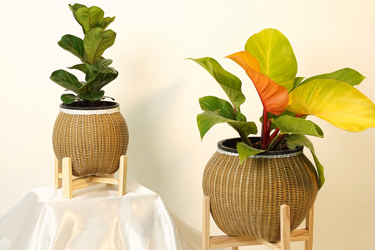 “ตอนที่มีโควิด-19 เราได้อยู่บ้านมากขึ้น มีช่วงเวลาได้คิดเรื่อยเปื่อย บางทีทำงานไปเราก็ได้แวะรดน้ำต้นไม้ระหว่างวันบ้าง ทำให้เริ่มมีไอเดียเรื่องทำโปรเจ็กต์เกี่ยวกับกระถางใส่ต้นไม้ เพราะทางบ้านทำ Local Business เกี่ยวกับขยะพลาสติกรีไซเคิล เริ่มต้นตั้งแต่นำขยะมาคัดแยกและฆ่าเชื้อโรค บดให้ละเอียดก่อนที่จะเข้าสู่กระบวนการเปลี่ยนสภาพเป็นเส้นหวายพลาสติก จุดนี้เราตัดสินใจทำในสิ่งที่ไม่เคยทำ เริ่มต้นจากสิ่งที่เราชอบ ต่อยอดด้วยธุรกิจครอบครัวร่วมกับคนในชุมชน”