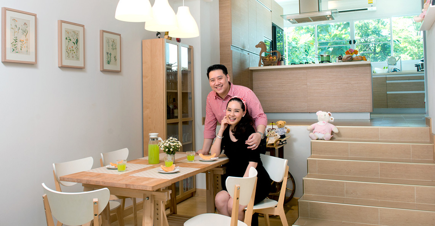 คุณนุ้ยเล่าว่า “คุณแม่ของคุณปอนด์ (อาจารย์มัลลิการ์ หลีระพันธ์) ท่านมอบบ้านให้ 2 หลัง มีที่เหม่งจ๋ายและที่นี่ หลังจากเราทั้งคู่ตัดสินใจว่าจะแต่งงานกันจึงได้เริ่มเลือกระหว่างบ้านทั้ง 2 หลัง ว่าเราจะอยู่ที่ไหนดี เราคำนึงถึงการเดินทางที่สะดวก ใกล้ทางด่วนและไม่ห่างจากห้างสรรพสินค้านัก บวกกับฤกษ์แต่งงานที่ได้ตอนนั้นเรามีเวลาเพียง 4 เดือน ในการรีโนเวตและตกแต่ง สุดท้ายจึงลงตัวที่บ้านหลังนี้ค่ะ”