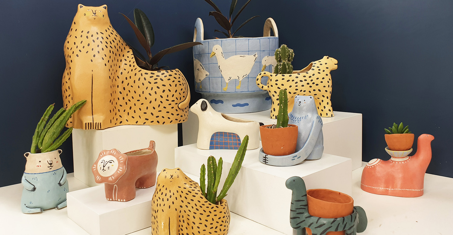หลักๆ จะเป็นคอลเล็กชันแจกัน ที่สร้างชื่อให้กับแบรนด์เรา  นอกจากนั้นก็จะมีกระถางต้นไม้ แก้วน้ำ งานของเราเป็นงานแฮนด์เมด ทุกขั้นตอน ซึ่งตลอดระยะเวลา 5 ปีที่ทำมาเราได้สร้างสรรค์คิดฟอร์มใหม่ๆ ตลอด ศึกษาเรื่องเทรนด์ของสี การตกแต่งบ้านในแต่ละปี เพื่อให้งานมีความทันสมัยอยู่ตลอด โดยนำฟอร์มใหม่ๆ ใส่เข้าไปด้วย อย่างมิ้นก็จะสนุกกับการปั้นฟอร์มใหม่ๆ  ทุกอย่างก็ไม่ได้จำเจ มีพัฒนาการอยู่เรื่อยๆ แต่ก็อิงกับเทรนด์ในตลาดด้วยและมีความเป็นตัวเราด้วย