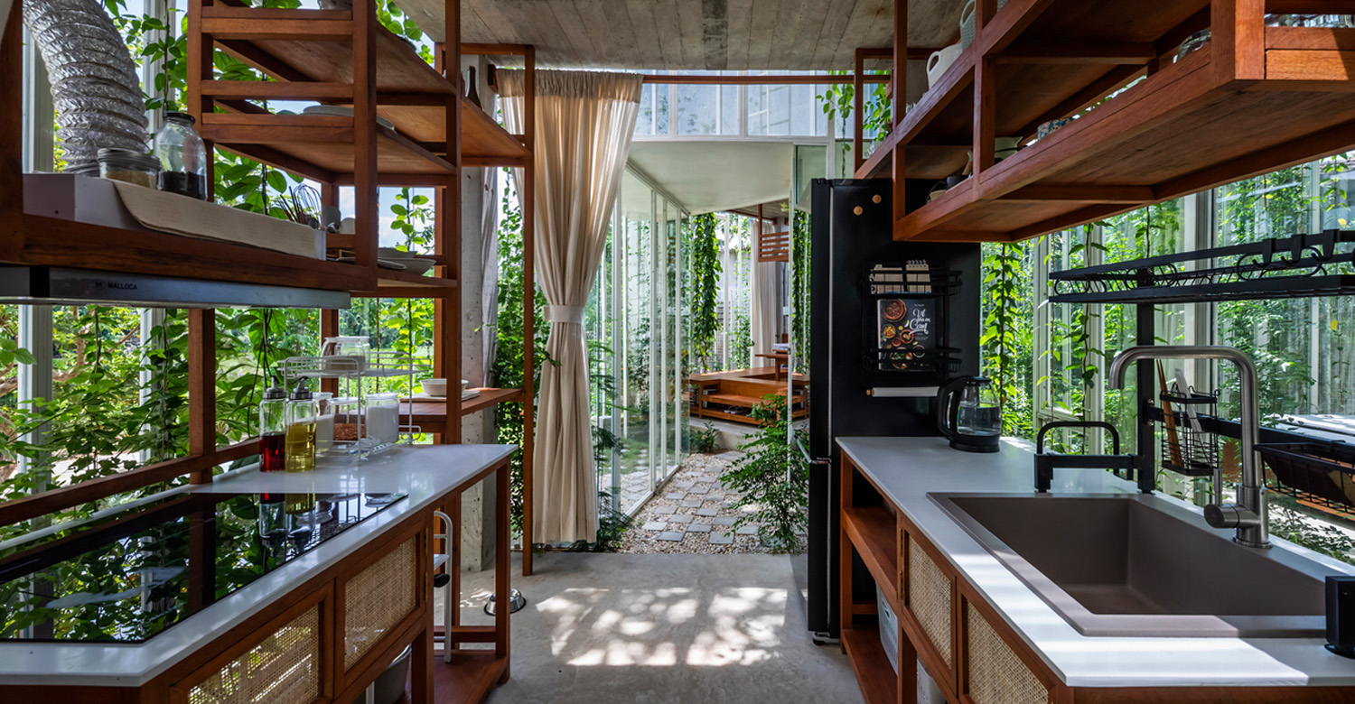 สามารถนำรูปแบบไปปรับใช้ให้เหมาะสมกับสถานที่และขนาดพื้นที่ได้ตามต้องการ ซึ่งข้อดีของการทำครัวเชื่อมกับสวน นอกจากจะมองเห็นพื้นที่สีเขียวได้จากภายในแล้ว ยังได้เรื่องของแสงสว่างจากภายนอกได้อย่างเต็มที่อีกด้วย