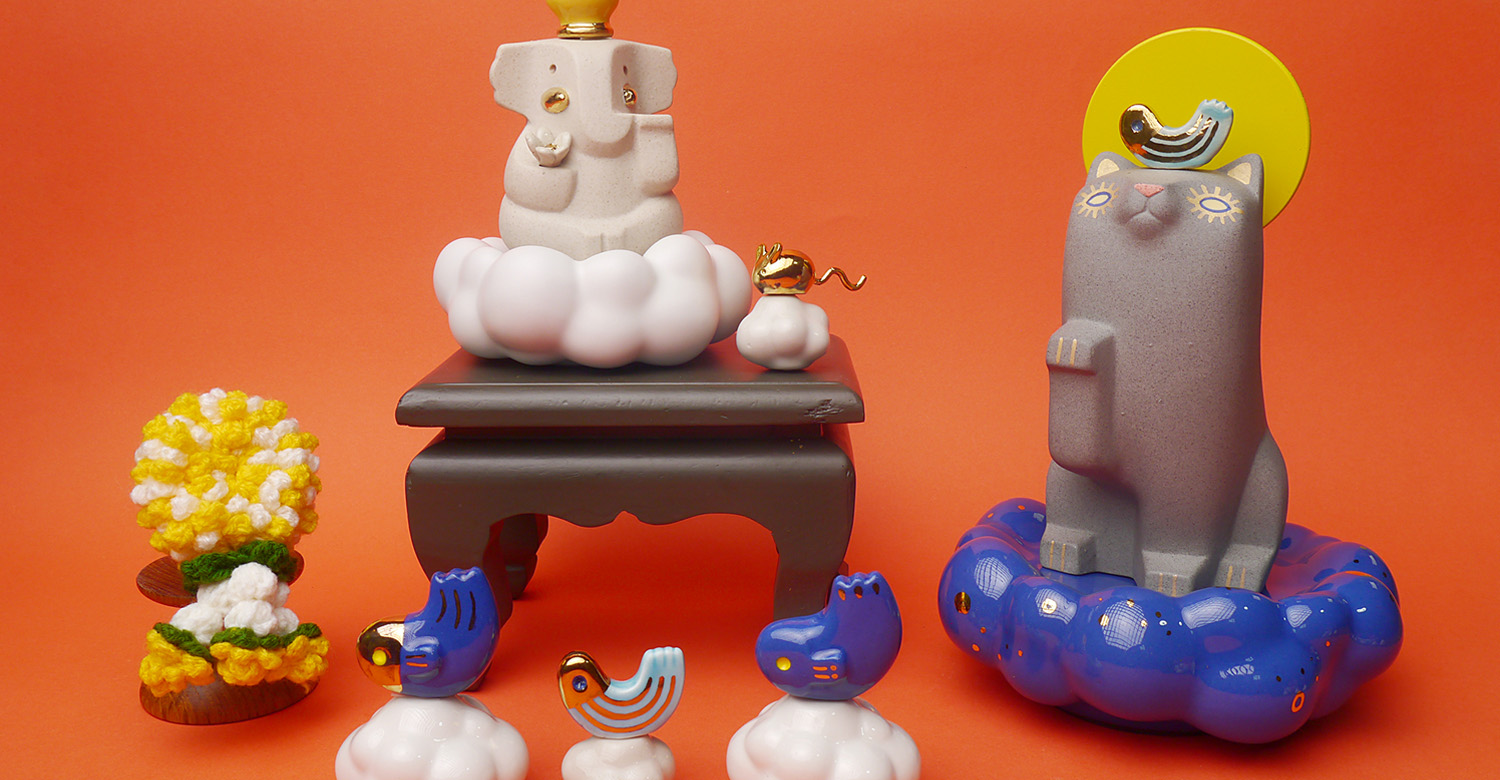 คาแรกเตอร์ที่ปั้นหลักๆ คือ แมว เสือ ช้าง และมีองค์ประกอบเล็กๆ พวกหนู เป็ด ปลา เราเลือกทำเป็นงานคอลเล็กชันโดยเริ่มจากแมวก่อนเพราะเข้าถึงง่าย เข้าใจง่าย และรูปทรงบวกกับไอเดียที่มีคือเราชอบแมวกวักของญี่ปุ่น และเป็นการแสดงถึงความเป็นไทย ช่วงนั้นมีไอเดียอยากได้แมวไทย แต่เป็นแมวกวักเหมือนญี่ปุ่น คอลเล็กชันแรกจึงออกมาเป็นแมวกวักนำโชค และเป็นคาแรกเตอร์ที่เรายังทำออกมาเรื่อยๆ