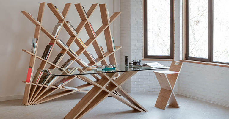 จุดเด่นของชั้นวางหนังสือขนาดกว้าง 1.97 เมตร สูง 1.95 เมตร หนา 0.28 เมตรนี้คือการถอดประกอบได้ จึงเป็นเครื่องเรือนขนาดใหญ่แต่อยู่ในวิสัยที่สามารถเคลื่อนย้ายได้ โดย Pousti เลือกใช้วัสดุไม้ประสาน MDF ทำสีพ่นอุตสาหกรรมและไม้เนื้อแข็ง เช่น วอลนัต เป็นตัวเลือกให้แก่ผู้ใช้ ภาพรวมจึงอยู่ในจริตของความงามอย่างเครื่องเรือนที่ผลิตจากไม้ในรูปแบบโมเดิร์น