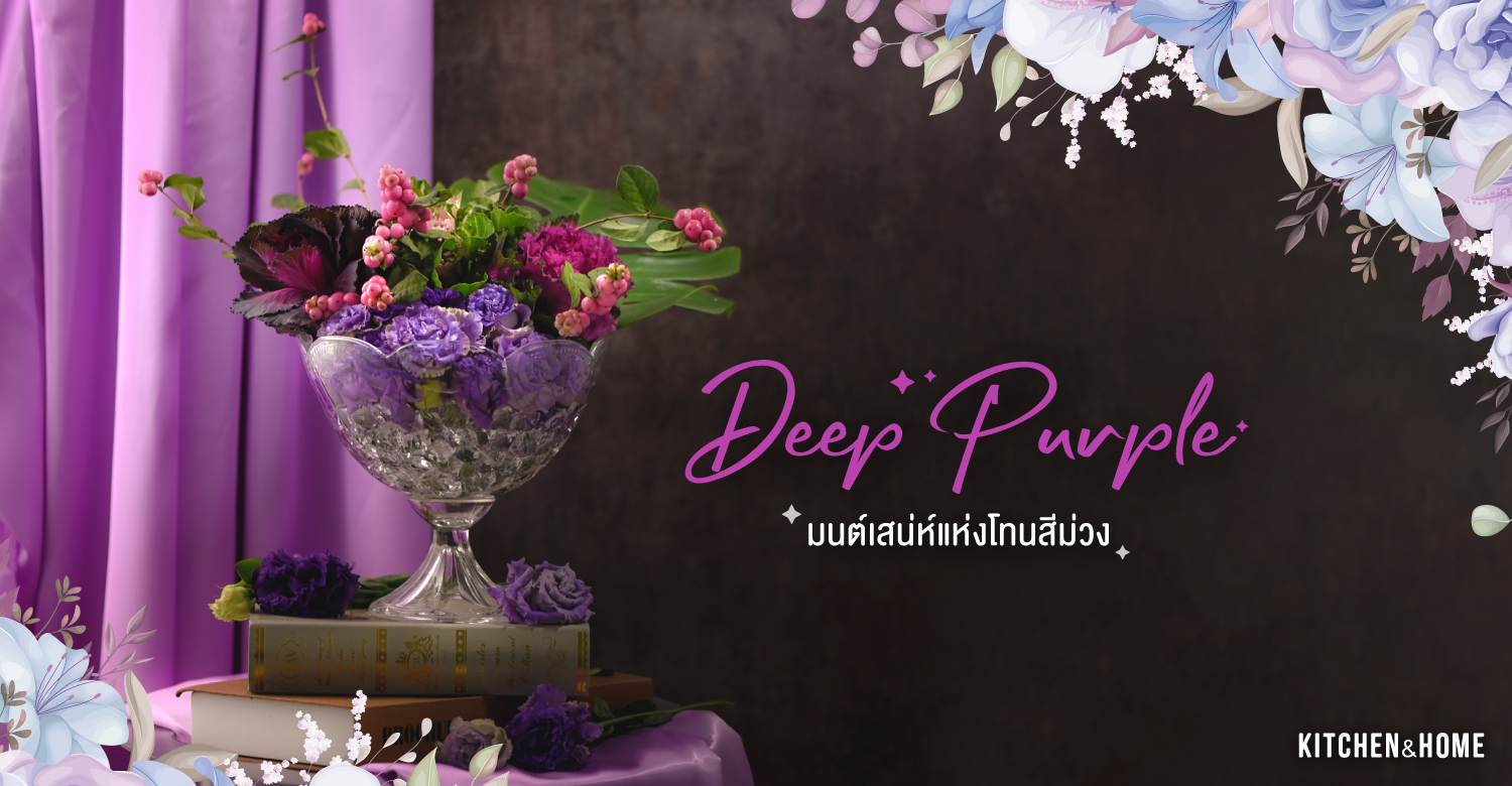 ขอเอาใจคนชอบสีม่วงกันให้สุดไปเลยกับการจัดมุมดอกไม้เล็กๆในโทนสีม่วงนั่นเอง ที่เราจะสามารถใส่มาได้เลยทุกโทนสีทั้งม่วงเข้ม ม่วงอ่อน ไล่ไปถึงม่วงอมชมพูและสีชมพูที่ดูเข้ากัน .ดอกไม้และภาชนะที่เราเลือกมาในครั้งนี้ก็จะมี ดอกกะหล่ำประดับหรือปูเล่ (Ornamental Cabbage) ดอกไลเซนทัส (Lisianthus) ดอกพราวด์เบอร์รี (Proud Berry) และ ใบมอนสเตอรา (Monstera) ส่วนภาชนะจะเลือกใช้เป็นแจกันแก้วใส.