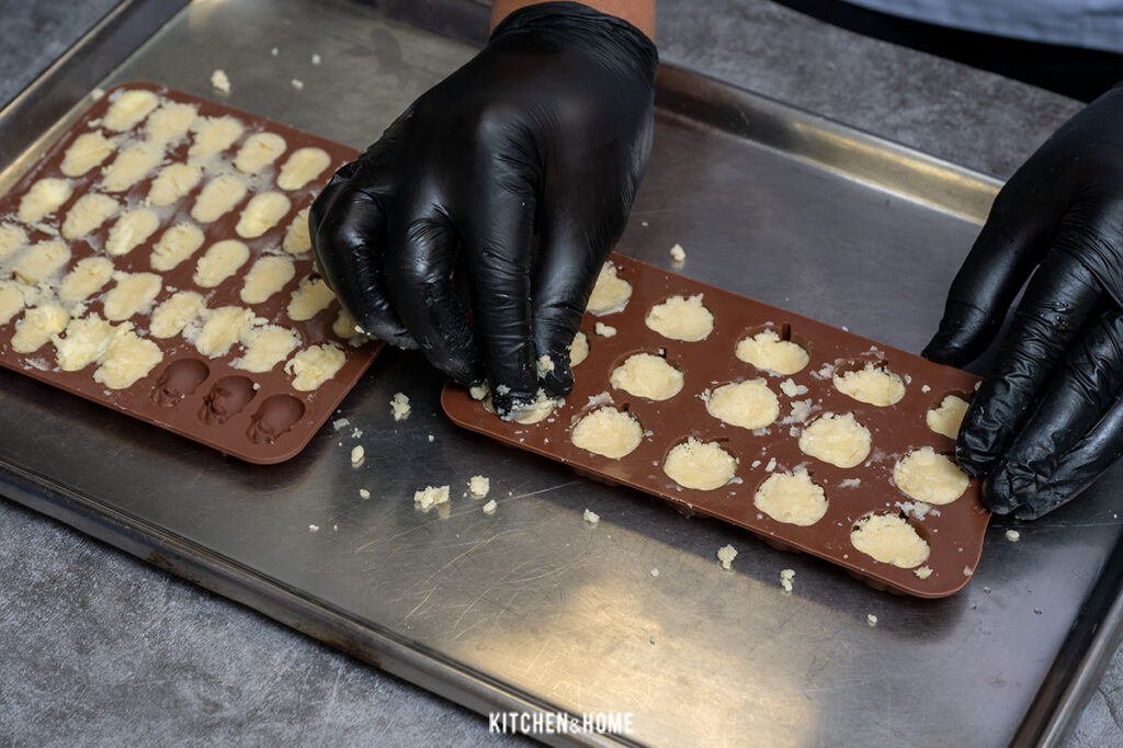 เมื่อพูดถึงครัมเบิล (Crumble) หลายคนนึกถึงเศษแป้งกรอบร่วนที่โรยอยู่บนหน้าขนม ไม่ว่าจะเป็น Apple Crumble หรือ Muffin Crumble ปุ๊-พิสิษฐ์ วงศ์ธีระชวลิต นักศึกษาสาขาศิลปะการประกอบอาหาร วิทยาลัยดุสิตธานี ได้โชว์ให้เห็นอีกมุมที่น่าสนใจว่าครัมเบิลไม่ได้มีไว้แค่โรยหน้าเพียงอย่างเดียว ด้วยการนำส่วนผสมมาอัดใส่พิมพ์ให้เป็นรูปทรงที่ต้องการ แล้วนำเข้าเตาอบจนกรอบ ก็กลายเป็นของตกแต่งขนมที่ทั้งสวยและอร่อยได้ โดยใช้เทคนิคง่ายๆ ที่ผสมแป้งเพียงครั้งเดียว แต่ต่อยอดได้หลายไอเดีย