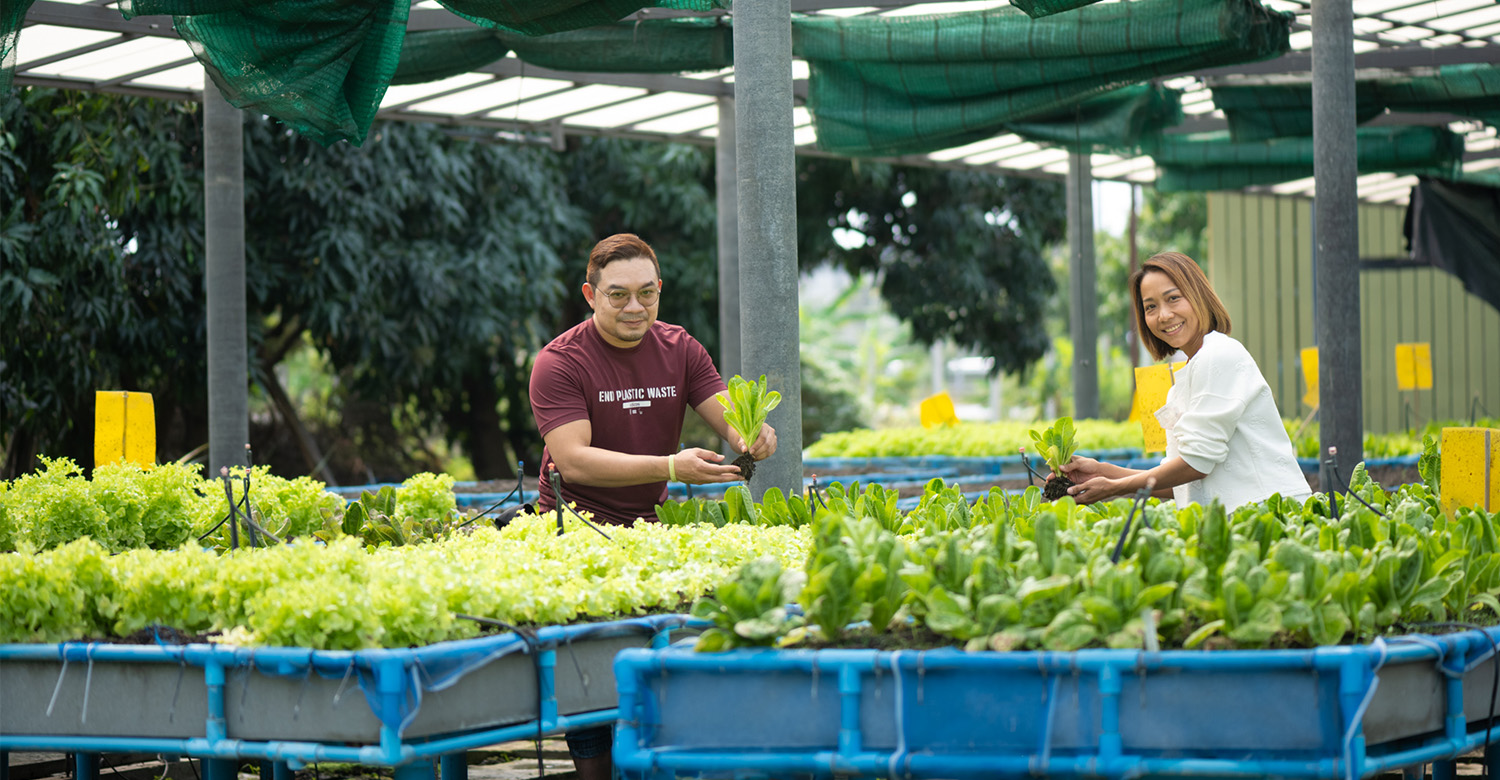 ในวันที่คาเฟ่ไม่ได้เป็นเพียงแค่ร้านกาแฟ แต่กลายเป็นแหล่งผลิตอาหารคุณภาพ Café on Farm คืออีกหนึ่งตัวอย่างที่พิสูจน์ว่าอาหารดีเริ่มต้นที่ต้นทาง คุณปลา-วารีรัตน์ เทพสง่า และคุณบิ๊ก-อัครเดช นาคขำ สองเจ้าของร้านที่ลงมือปลูกผักด้วยตัวเอง คัดสรรวัตถุดิบจากฟาร์มแล้วนำมาสร้างสรรค์เป็นเมนูแสนอร่อยที่ทั้งสดใหม่และดีต่อสุขภาพ เบื้องหลังอาหารทุกจานที่เสิร์ฟจึงมีเรื่องราวและความตั้งใจซ่อนอยู่ในนั้น แล้วอะไรคือแรงบันดาลใจที่ทำให้พวกเขาก้าวเข้าสู่เส้นทางของการทำฟาร์ม มาร่วมกันค้นหาเสน่ห์ของคาเฟ่ที่ไม่เหมือนใครแห่งนี้ไปพร้อมๆ กันเลย