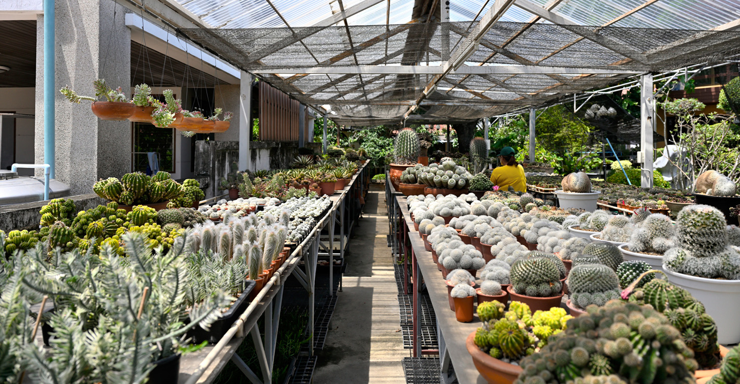 บรรยากาศจึงมีความน่ารักแสนสบาย ยิ่งถ้ามาในช่วงแดดร่มลมตกยิ่งเหมาะชวนให้สนทนาพูดเรื่องแคคตัสได้เป็นชั่วโมงๆ ซึ่งนี่คือจุดเด่นของเป้ หนามแดง ไม่หวงความรู้ แนะนำการปลูกให้กับหน้าใหม่แบบไม่กั๊ก