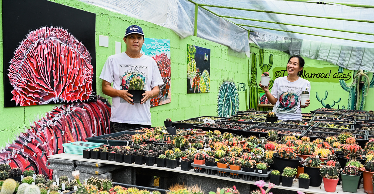 “แคคตัส” หรือกระบองเพชร พืชที่มีเสน่ห์ในแบบตัวเองจนทำให้หลายคนตกหลุมรักและกลายเป็นนักสะสมไปในที่สุด เช่นเดียวกับครูเล็ก-ศิรยา บุญแสง ครูสอนศิลปะที่ยามว่างจากการจรดแปรงวาดภาพก็แบ่งเวลามาเลี้ยงแคคตัส จากงานอดิเรกกลายเป็นเจ้าของสวนแคคตัสและเพจ T.LekNarroad Cactus ที่ทำร่วมกับสามี น้าโรจน์-ไพโรจน์ กาวิใจ